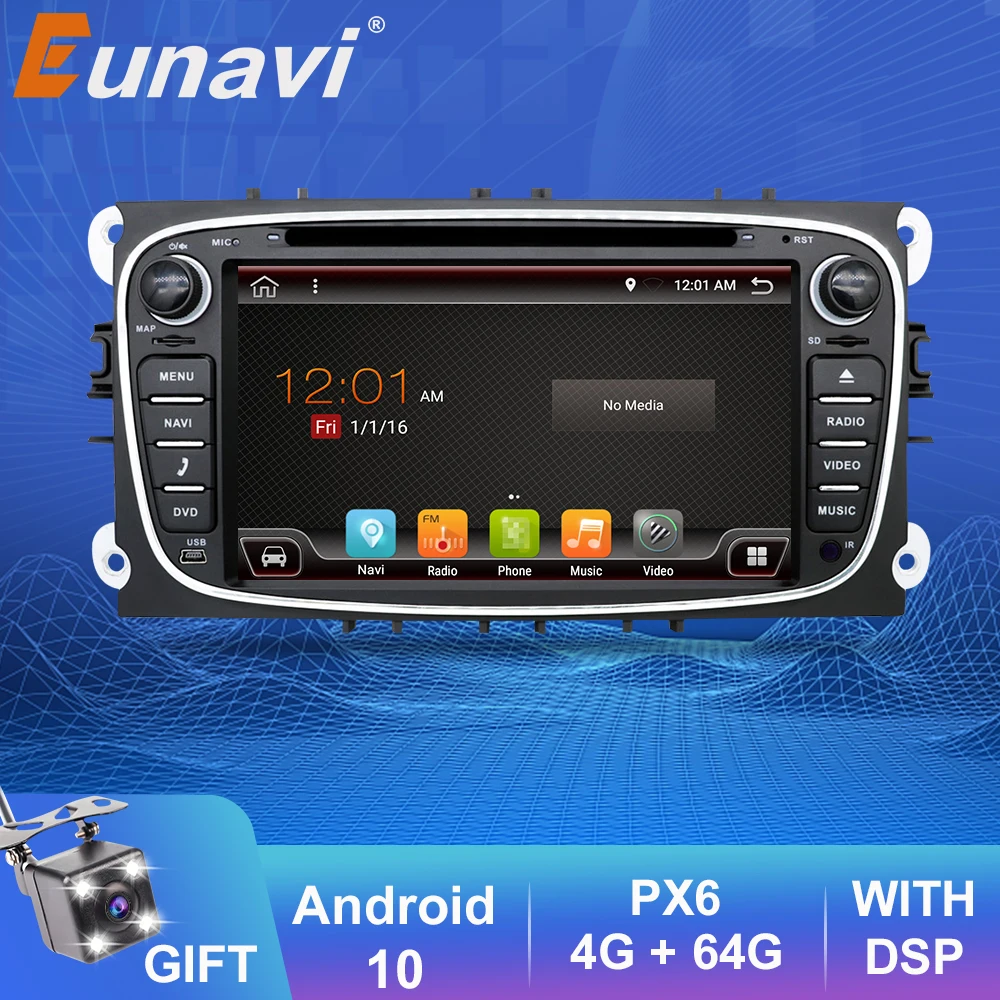 Автомагнитола Eunavi 2 Din Android 10, мультимедийный видеоплеер для Ford Focus 2 II