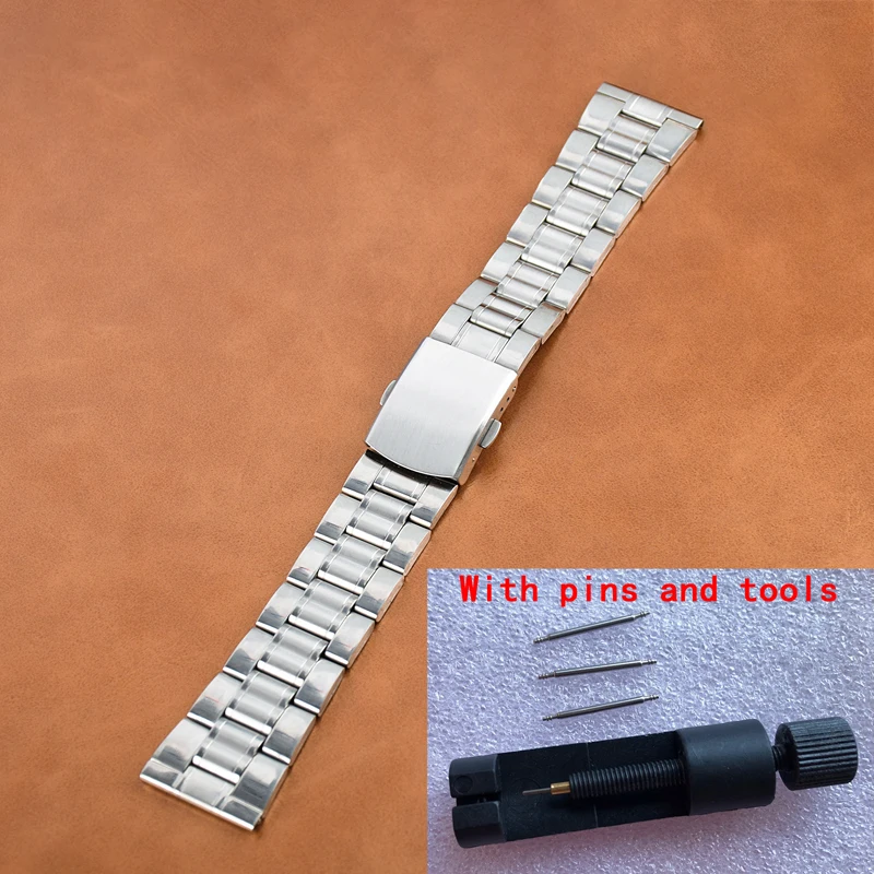 Ремешок из нержавеющей стали для наручных часов, серебристый металлический браслет для мужчин и женщин, с булавками и инструментами, 121416182022 мм