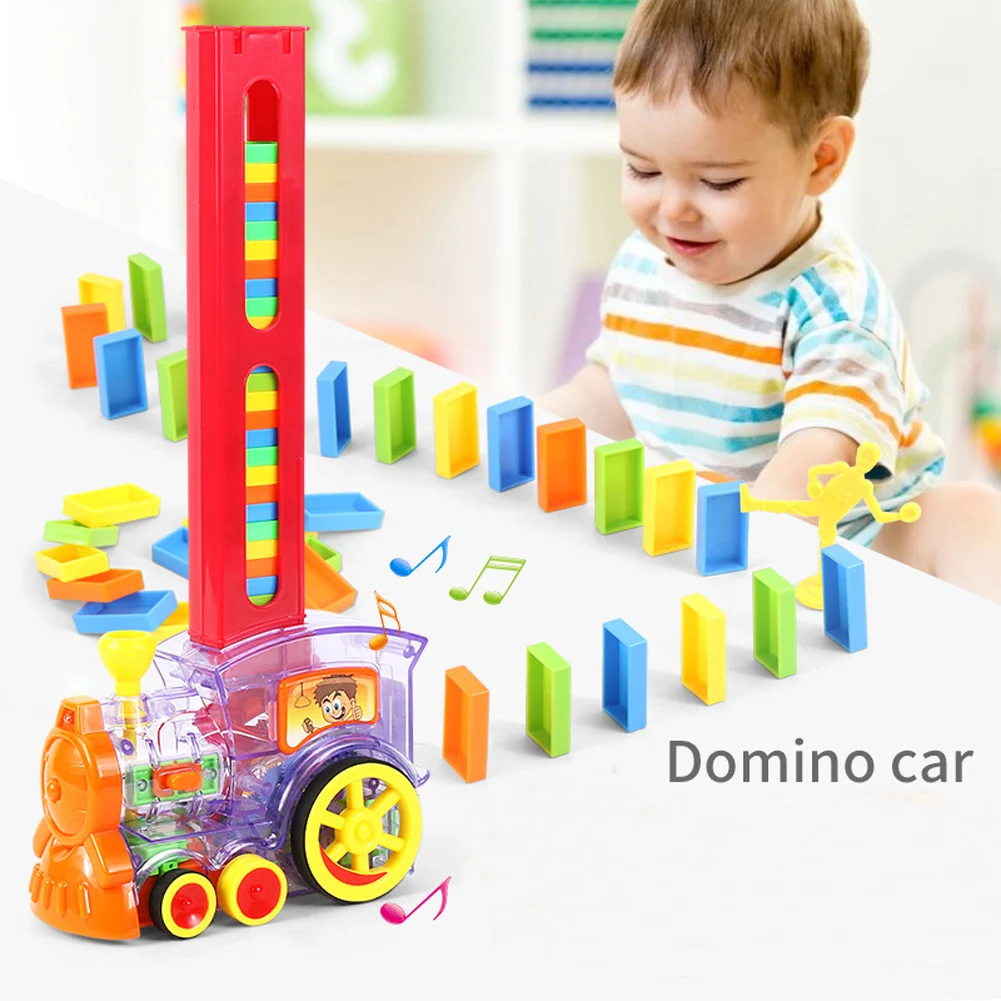 Поезд домино, набор блоков домино, игрушка для строительства и укладки домино, Электрический поезд домино, Набор машинок, игровой штабелер, креативный подарок