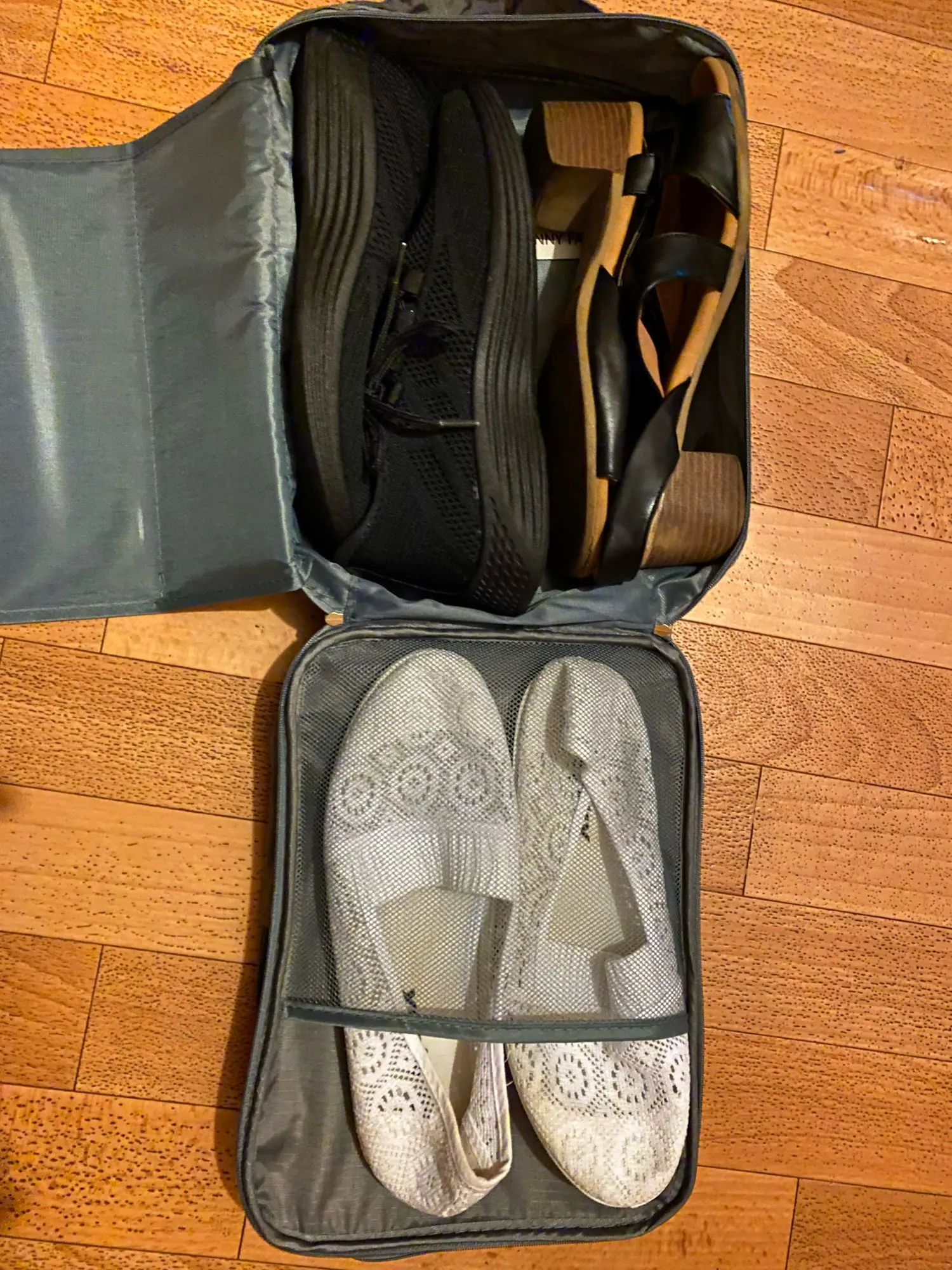 Товар отправили быстро.Вместительная,качественная вещь.Немного торчали нитки,но это не критично.Ношу обувь 38 размера.Спокойно поместилось четыре пары.Мягкая,если обуви немного-можно и ужать,придавить, если нужно побольше-немного расправить и уместить пятую пару.Вообщем отличная сумка.Для путешествий,то что надо.Спасибо продавцу