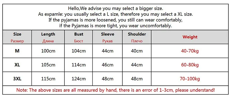 M Обхват груди: 104 см Длина: 100 см Ширина плеч: 40 см длина рукава: 44 смXL Обхват груди: 114 см Длина: 105 см Ширина плеч: 44 см Длина рукава: 46 см3XL Обхват груди: 124 см Длина: 115 см ширина плеч: 48 см Длина рукава: 48 смПримечание: Все вышеуказанные размеры измеряются вручную, возможна погрешность в 1-3 см, пожалуйста, поймите!