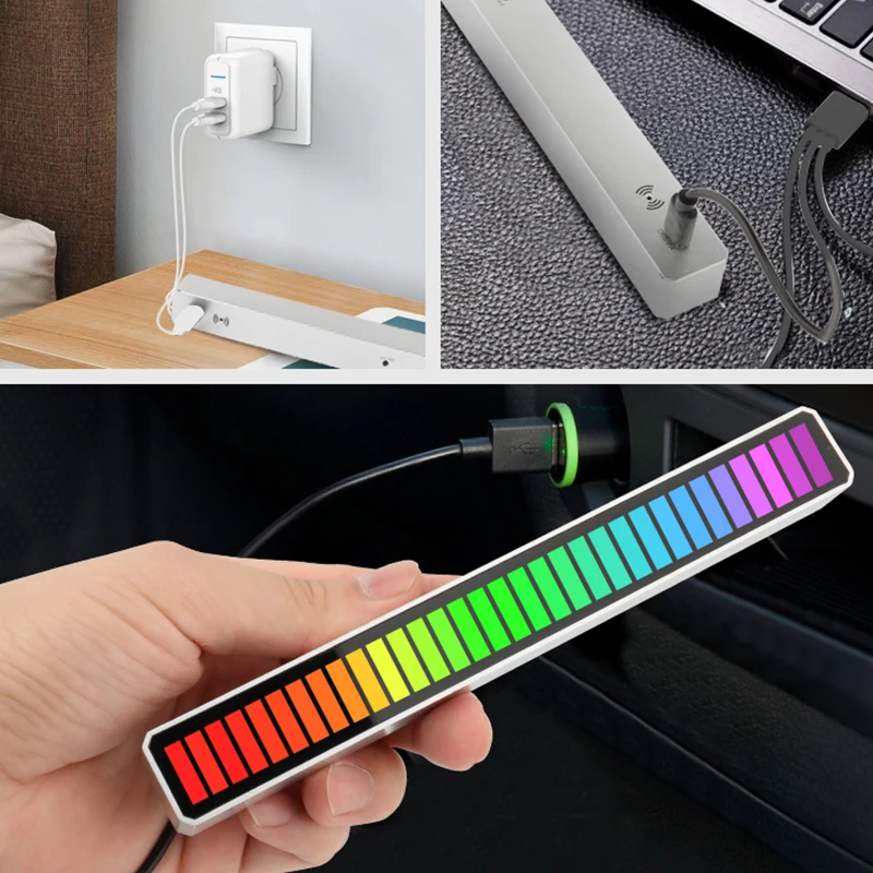 Звуковое управление звукосниматель музыка окружающий светильник полоса эквалайзер светодиодная перезаряжаемая батарея компьютер аудио ритм DJ атмосферная лампа