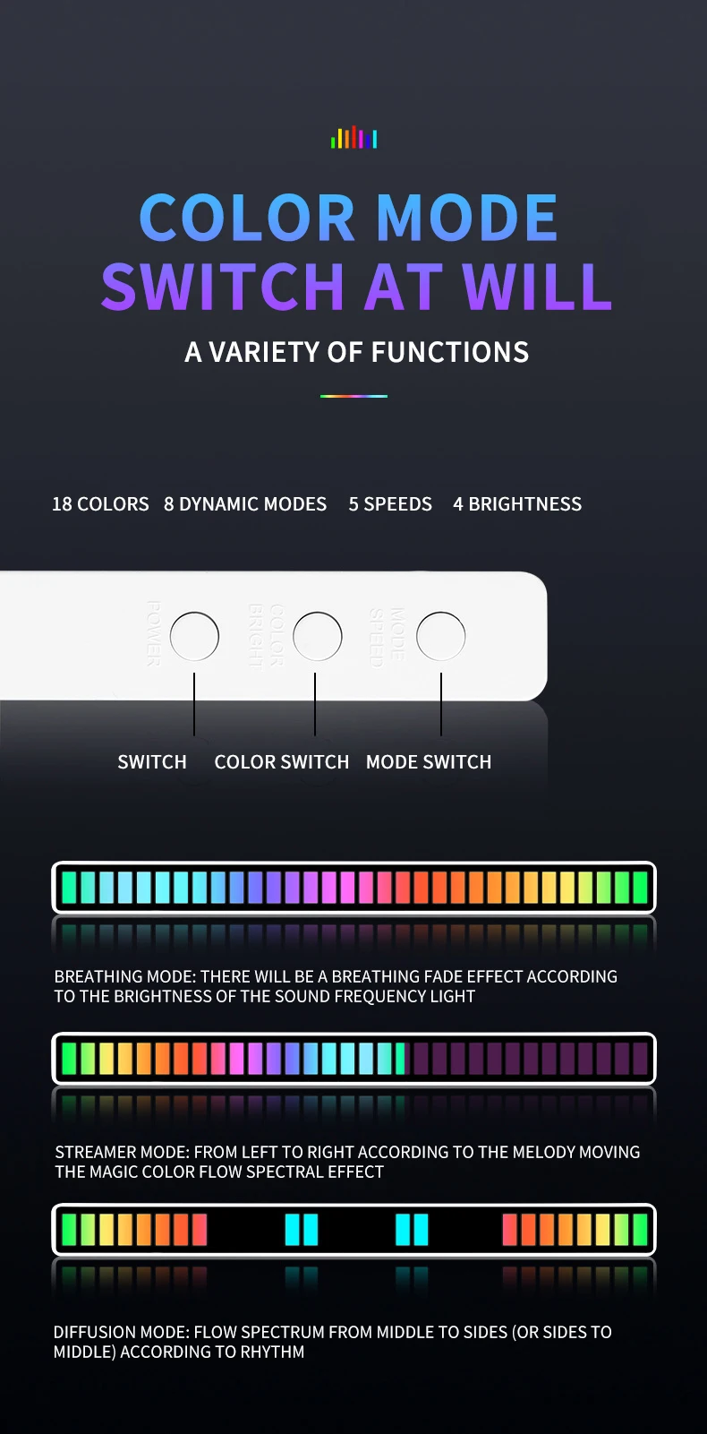 Feature 3RGB Sound control light