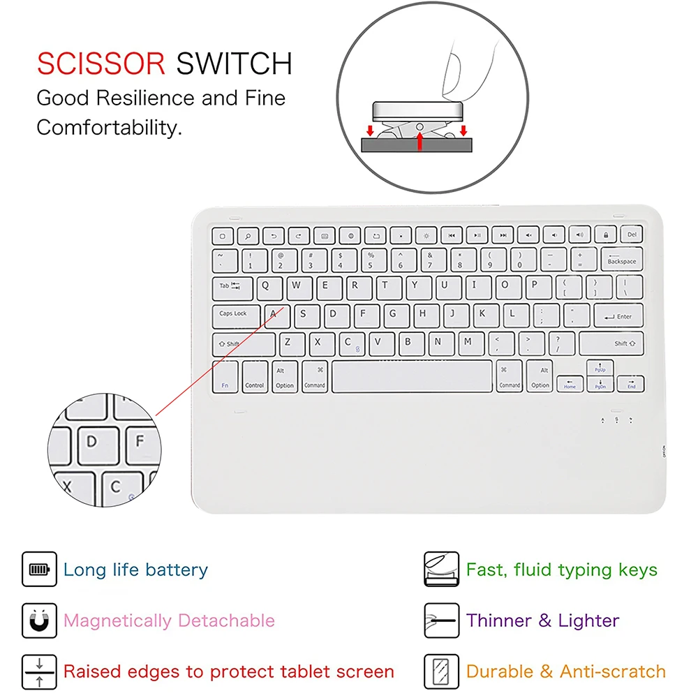 【Легкий и портативный 】Стильный Ультратонкий дизайн делает путешествие или бизнес-путешествие легким. Положить его в рюкзак, сумку для компьютера или чемодан никогда не займет слишком много места и не добавит лишнего веса.【 Долгосрочной перспективе use】Клавиатура и мышь имеют встроенные литиевые аккумуляторы, которые используется для более чем 20 дней после полной зарядки (2 часа непрерывного использования в день). Если вы не используете его более 15 минут, клавиатура автоматически начнет спать, чтобы сохранить питание. Если вы хотите продолжать использовать его, просто нажмите любую клавишу, чтобы разбудить клавиатуру.【Удобный Bluetooth keyboard】Клавиши клавиатуры имеют ножничную структуру, а квадратные шоколадные колпачки эргономично разработаны. С этой клавиатурой вы можете спокойно печатать на планшетах, Samsung и смартфонах, предоставляя вам удобный и приятный опыт ввода текста.【Стабильный bluetooth-разъем 】Клавиатура использует стабильную технологию Bluetooth 3,0, и рабочее расстояние может достигать 10 м. Есть два способа подключения мыши: USB и Bluetooth, plug and play, без других драйверов или опций.