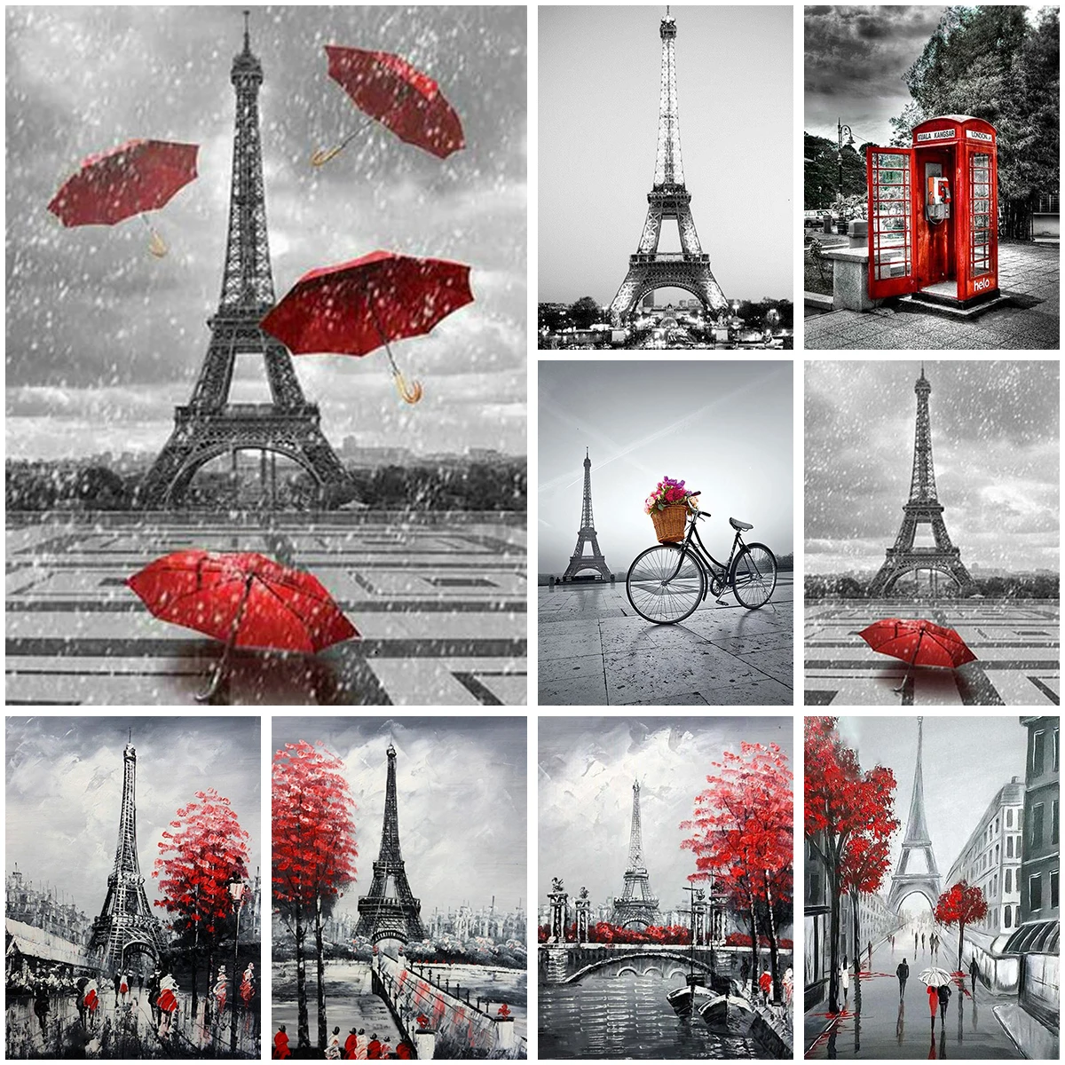 5D алмазная живопись, пейзаж, башня, алмазная вышивка сделай сам, чернильный фон, красный зонт, мозаика, Рождественское украшение для дома, подарок