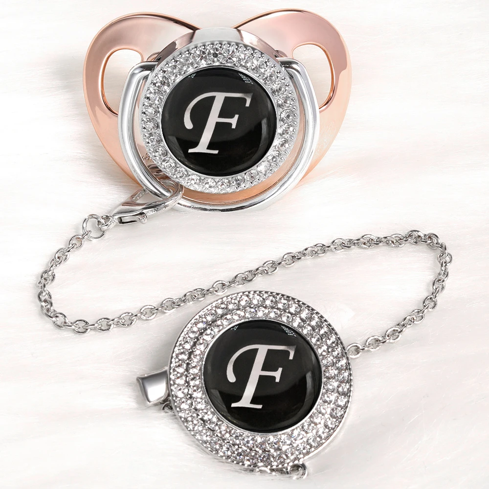 Золотая соска 26 инициальных букв СВЕРКАЮЩИЕ СЕРЕБРЯНЫЕ силиконовые...