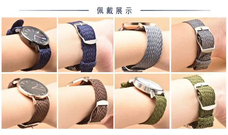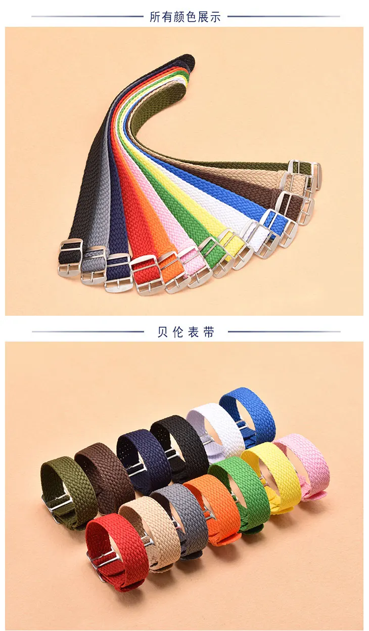 14 мм 16 мм 18 мм 20 мм 22 мм цветной плетеный нейлоновый ремешок для часов из перлона, сменный тканевый браслет-браслет