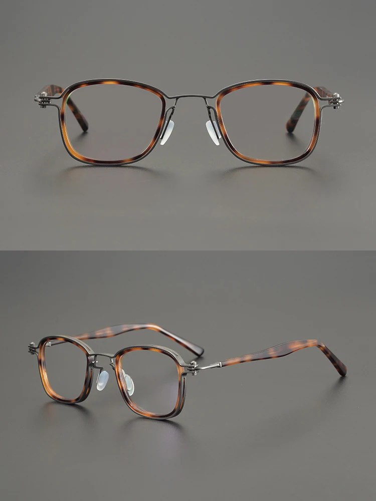 Мужская квадратная оправа для очков, винтажная оправа из чистого ти...