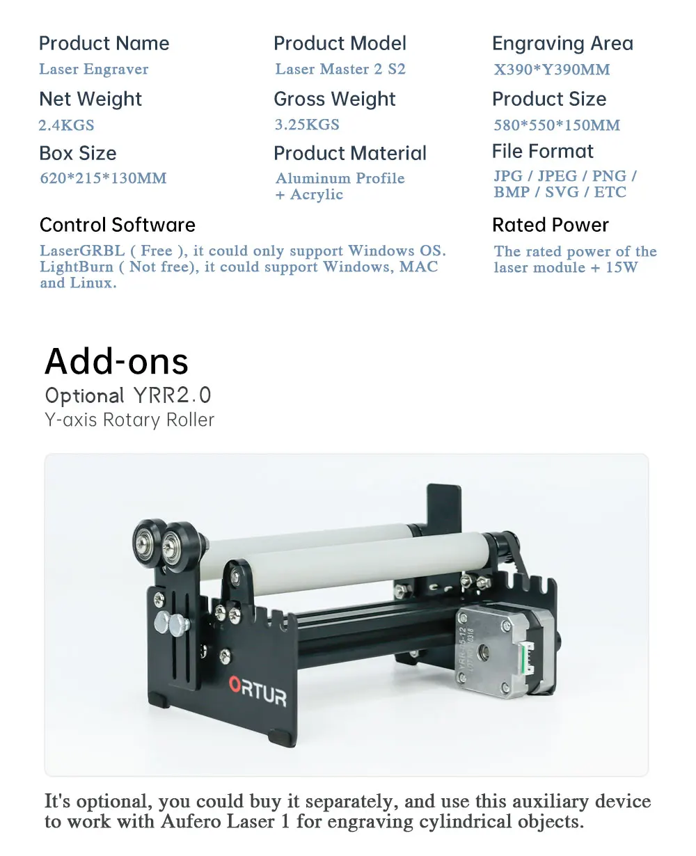 Краткое описание:Основные характеристики:● Специализированная материнская плата с 32 битами MCUОн может обрабатывать 32 инструкции, поддерживать скорость передачи данных до 921600, более мощный!● Самая продвинутая 32 битная Лазерная гравер прошивкаOrtur laser master прошивка, умнее, быстрее, более высокая точность и проще в использовании.● Диапазон мощности лазера может быть S0 - S1000, по сравнению с 8 битами настольных лазерных гравировальных станков, которые имеют только S0 - S255, Ortur лазерный мастер может контролировать лазерный луч более точно, может даже использовать лазерное устройство высокой мощности, чтобы «нарисовать» изображение на бумаге, О том, что 8 бит высокой мощности лазерные гравировальные инструменты не смог нажать на кнопку.● Скорость гравировки может достигать 5000 мм/мин.● Защита активного положенияНа материнской плате есть g-сенсор, если машина обнаруживает неавторизованное движение, лазерный луч остановится.● Защита лазерного лучаЕсли ваша компьютерная система остановлена или USB кабель отключен, привело к тому, что лазерный гравер останавливает движение, лазерный луч остановится, чтобы предотвратить пожар.● Обнаружение и ограничение длительности экспозицииЕсли лазерный гравер находится под контролем, но пользователи забывают работать и поддерживать работу лазерного луча, дополнительная безопасность отключится, чехол остановит движение двигателя, чтобы предотвратить пожар.● LaserGRBL (бесплатное программное обеспечение) поддерживает Windows XP, 7, 8, 10. LaserGRBL является самым популярным программным обеспечением для резьбы в мире, может импортировать различные форматы изображений, вы можете редактировать в PhotoShop, Inkscape, CAD и т. Д., а затем подключаться к граверу с помощью лазерного LaserGRBL для гравировки и резки.● LightBurn (не бесплатное программное обеспечение, lightburnsoftware.com) поддерживает Windows, Mac OS и Linux. Это самое популярное Платное программное обеспечение для резьбы в мире, очень простое в использовании.● Этот лазерный гравер поддерживает режим PWM.● Предварительно собранные детали, просто нужно 10 - 20 минут для установки машины.● 390x390 мм большая площадь гравировки.● Рама из алюминиевого профиля + структурный кабель, прочная структура, плавная работа, привлекательный внешний вид● Синхронизация механической структуры вала, избегайте синхронизации на двух y-рельсах во время полноскоростной гравировки.Спецификация:● Материнская плата: материнская плата 32 бит с MCU 32 бит● Прошивка: Ortur 1. 8 Лазерная прошивка● ОС верхнего компьютера: Windows (работает с LaserGRBL ), MAC OS и Linux (работает с LightBurn)● Мощность лазерного гравера: 36 Вт, 12 В 3 А● Электрическая мощность лазерного модуля: 20 Вт● Длина волны: 445 ± 5 нм● Переменный фокус: Да● Формат ввода: NC, BMP, JPG, PNG, DXF и т. Д.● Площадь Резьбы: X: 390 мм x Y: 390 мм● Скорость резьбы: 5000 мм/мин и меньше● Размер изображения: нет ограничений (точность пикселей может быть свободно отрегулирована, и по умолчанию 300 пикселей на дюйм, это около 0,81um точность пикселей)Примечание:● Пожалуйста, носите очки при работе с лазерным гравером. Надевайте защитные очки, чтобы избежать слепоты.● Пожалуйста, не прикасайтесь к лазерному излучателю рукой, иначе он может сжечь вашу руку.● Пожалуйста, избегайте сильного воздействия на машину.● Детям до 14 лет не разрешается использовать этот продукт, и детям старше 14 лет требуется наблюдение 