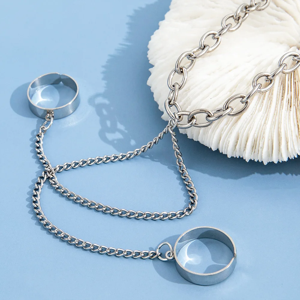 Sindlan Панк Серебряный цвет цепь браслет на запястье для женщин набор колец из нержавеющей стали пара эмо Модные Ювелирные изделия Подарки Pulsera Mujer