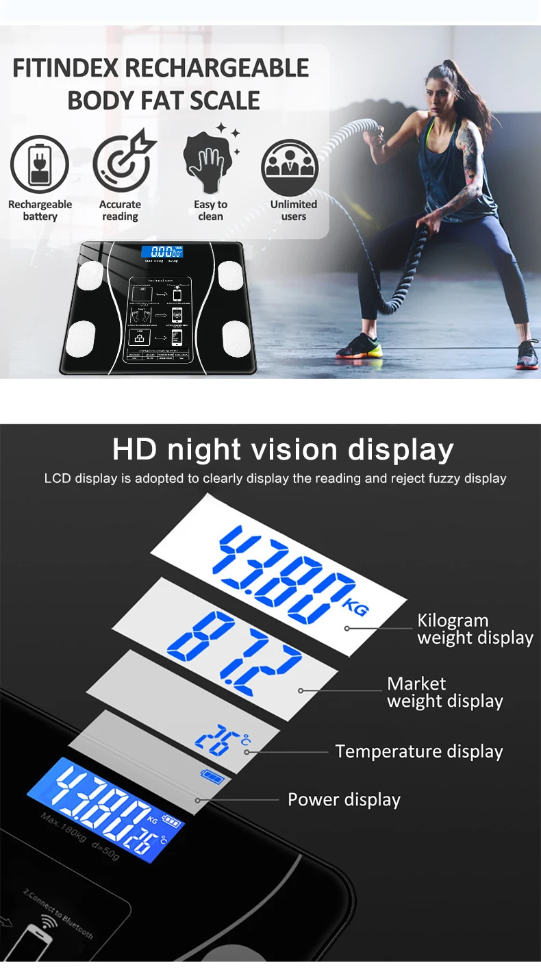 Bесы напольные Профессиональные весы для ванных комнат Мониторинг B...