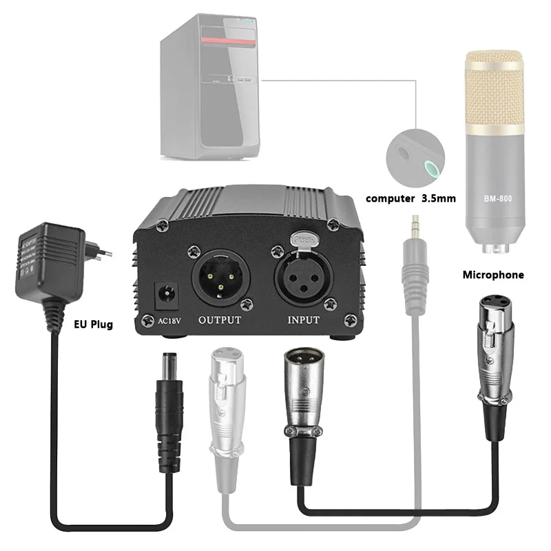Для фантомного питания Bm 800 микрофон 48 в источник питания с адаптером XLR аудио кабель для конденсаторного микрофона караоке микрофон
