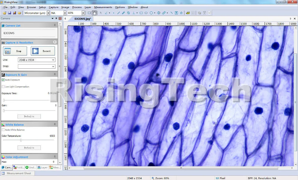 Высокая чувствительность позволяет камере работать под низким светильник, например, эта камера может работать с затемнением и флуоресцентным микроскопом