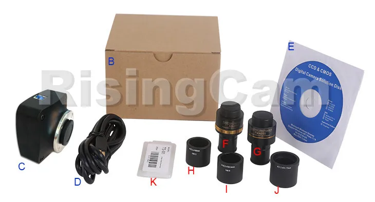 Примечание: для дополнительного аксессуара F и G укажите тип камеры (C-mount, камера микроскопа или камера телескопа) risingTech инженер поможет вам определить правильный микроскоп или адаптер для камеры телескопа для вашего применения;