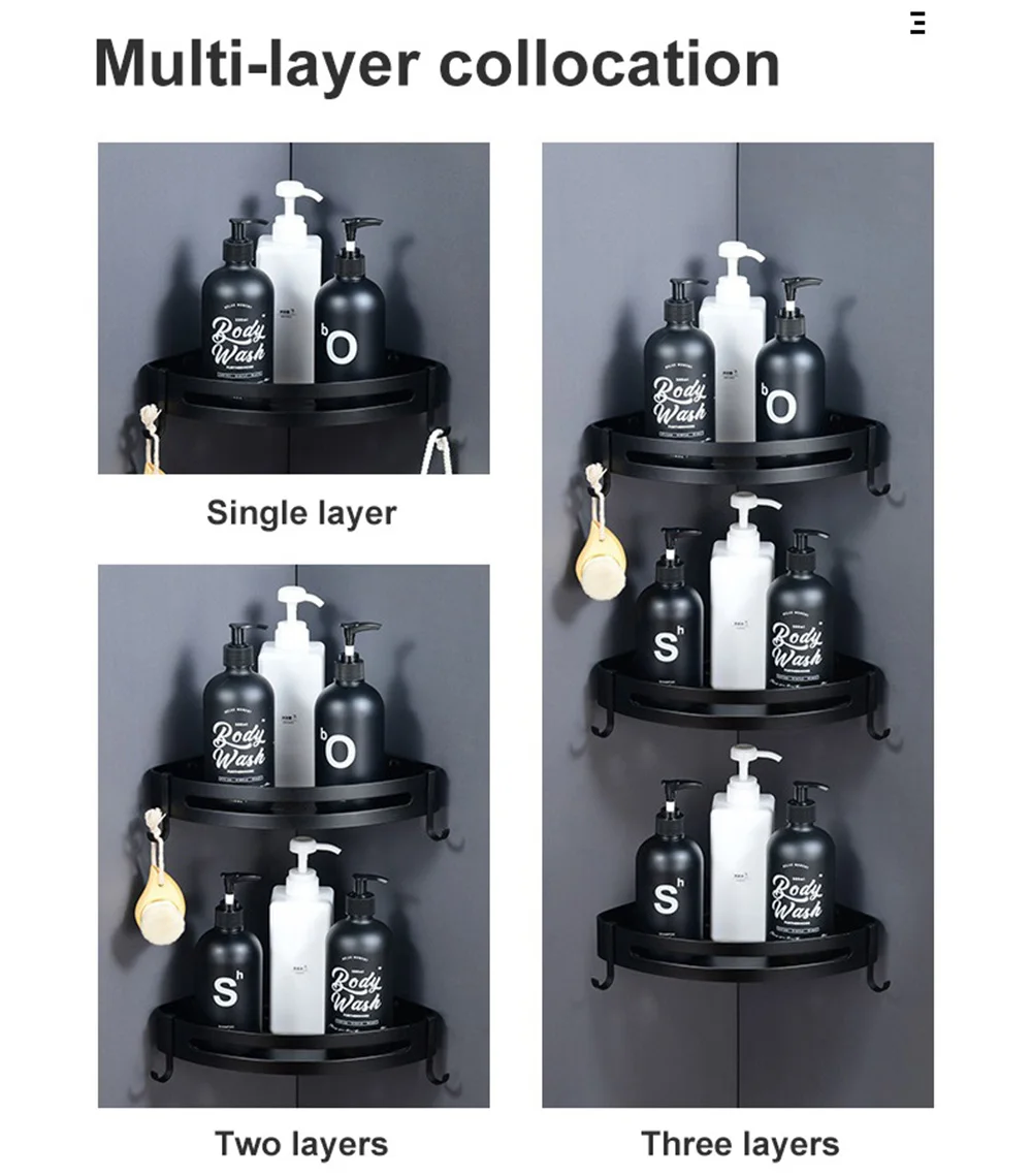 Полка-органайзер для ванной комнаты, без сверления, треугольная стойка для хранения полотенец и душа, черные угловые полки, Настенный алюминиевый держатель для шампуня