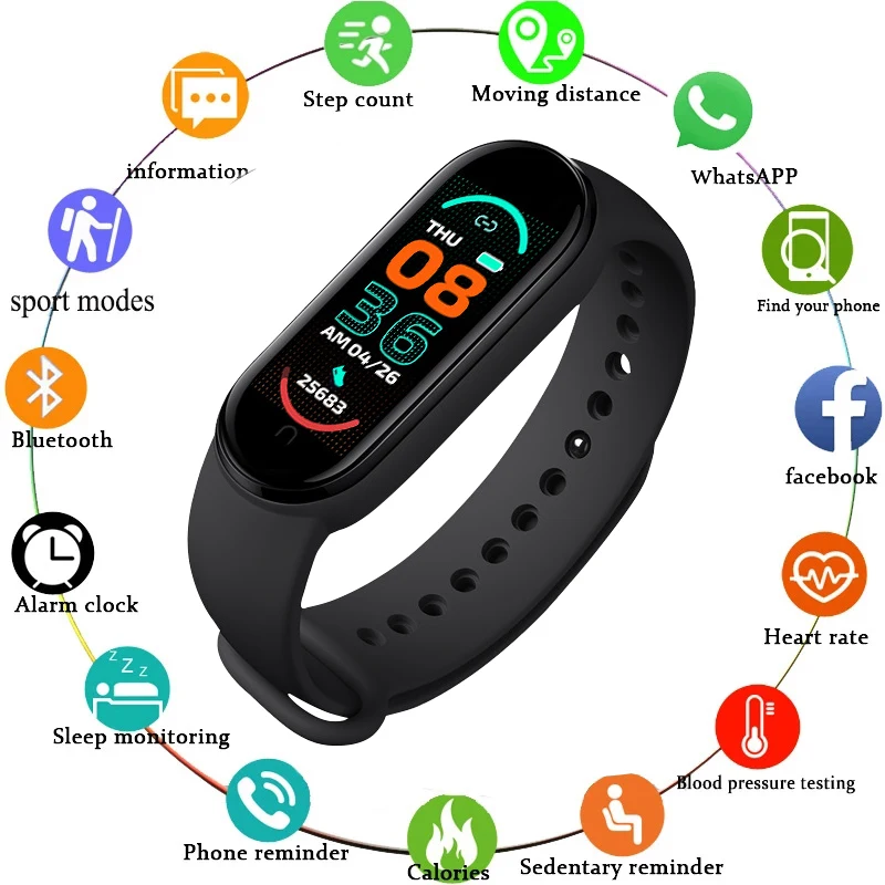 Смарт-часы M6 для мужчин и женщин, смарт-часы с пульсометром, фитне...
