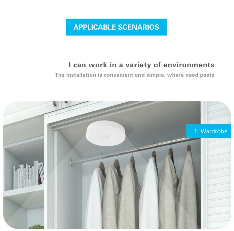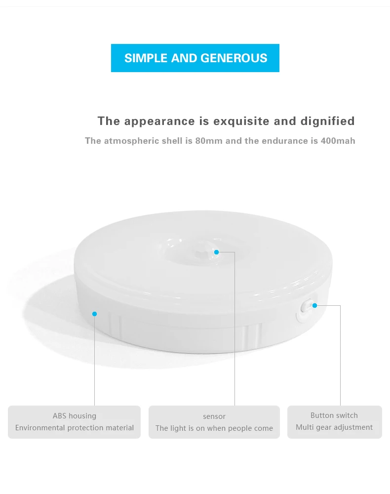 Беспроводной светодиодный ночник с датчиком движения, Круглый Ночно...