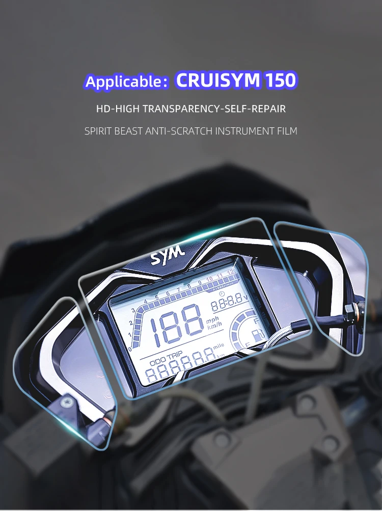 Бренд продукта: SPIRIT BEASTНазвание продукта: YBM065-instrument пленка L65Материал изделия: ТПУЦвет изделия: ПрозрачныйФункция продукта: высокая четкость, высокая прозрачность, устойчивость к царапинам, защита от тумана и дождяПрименимые модели: CRUISYM 150Количество товара: купите один бесплатноХарактеристики продукта: защита от дождя и тумана/высокая прозрачность/HD/Защита от царапин/Защита от пылиТеплое напоминание; Отрывайте ① при наклеивании Используйте скребок/карту для удаления пузырьков, затем разорвите ②