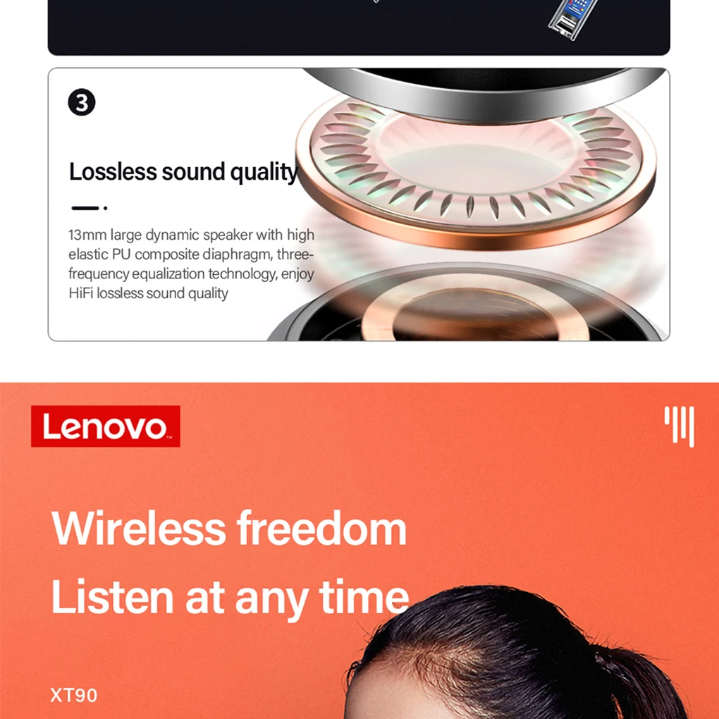 Оригинальные беспроводные наушники Lenovo XT90, Bluetooth 5,0, TWS ...