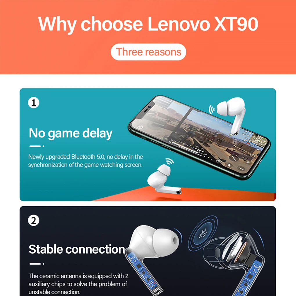 Оригинальные беспроводные наушники Lenovo XT90 TWS, Bluetooth 5,0, ...