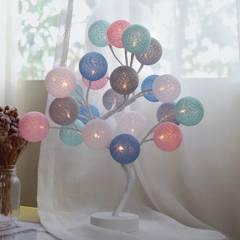 Светодиодная хлопковая шариковая лампа, цветной мигающий светильник, прикроватный ночной Светильник для спальни, струнный светильник, Рождественская гирлянда, Зеленая лампа, леска, каменщик