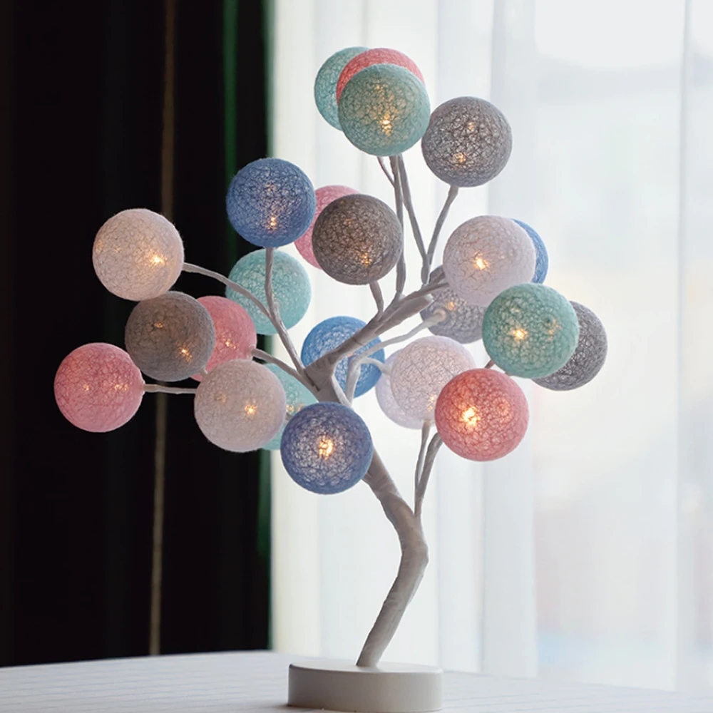 Светодиодная лампа с хлопковым шариком, цветной мигающий светильник для спальни, прикроватный ночник, световая лента, Рождественская гирлянда с зелеными линиями светильника, каменщика