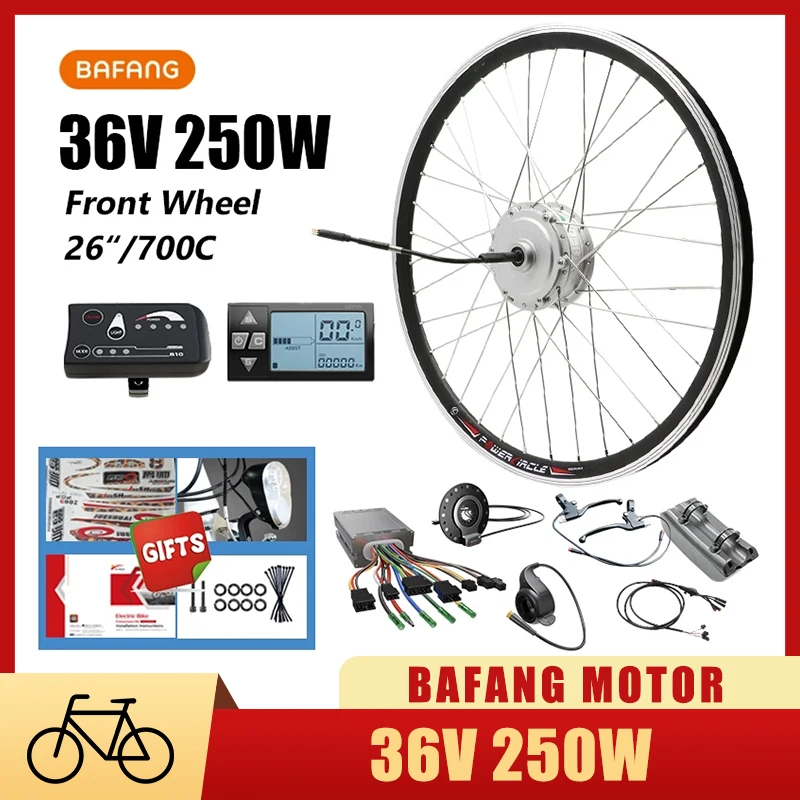 Комплект для электровелосипеда BAFANG, 36 В, 250 Вт, серебристая шестерня, Передняя Ступица, мотор колеса для горного велосипеда, 26 дюймов 700C, дисковый V-тормоз, Ebike 8fun