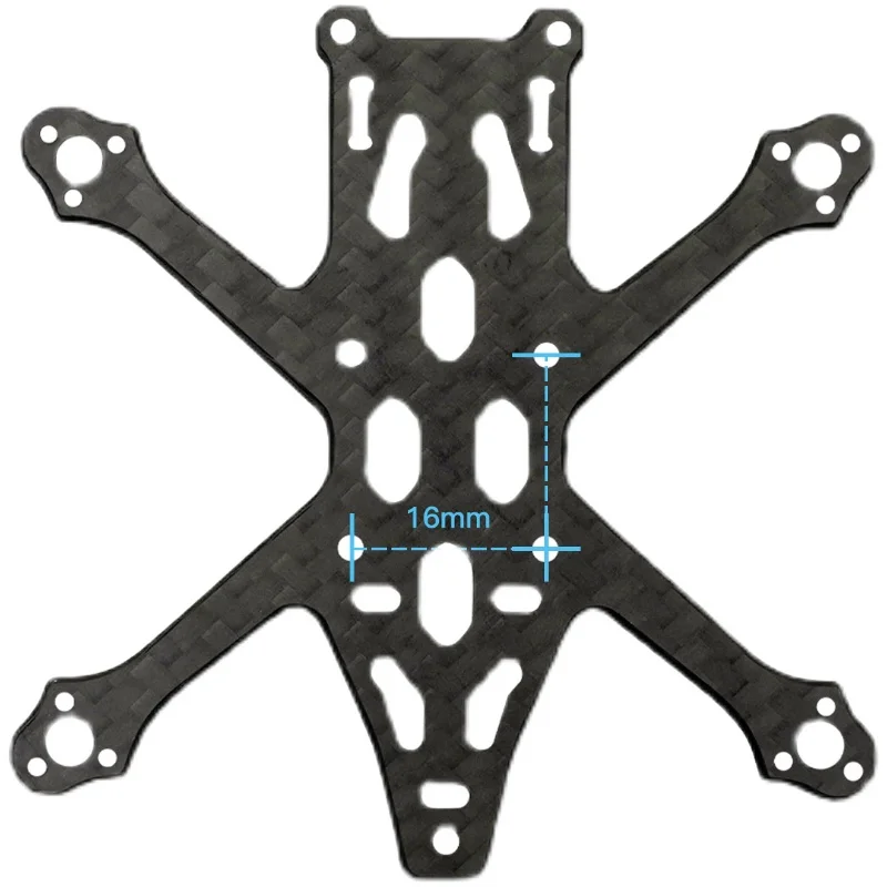 ST16 продолжает последовательную концепцию дизайна серии «Phantom», с легким и причудливым дизайном фюзеляжа полета. С 1,5 мм углеродное волокно руки и в размерах (на 1 мм верхней пластины, точку баланса поддерживается между нашей главной целью является предоставление фюзеляжа, а вес всего беспилотного летательного аппарата. Монтажные отверстия для моторов m1.4 × 3 могут использоваться для установки небольших бесщеточных моторов с 3 отверстиями для уменьшения веса корпуса. Хорошая ширина руки способствует высокой долговечности. Дизайн, подходит для фристайла. Без реквизитов. Благодаря 3D печатных частей рама весит всего 8,5 г, экономя много общий вес. Независимый батарейный отсек предназначен для крепления батареи сверху и снизу дрона, что делает его очень удобным и быстрым для замены батарей.