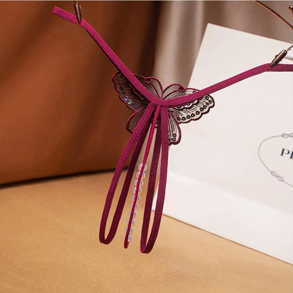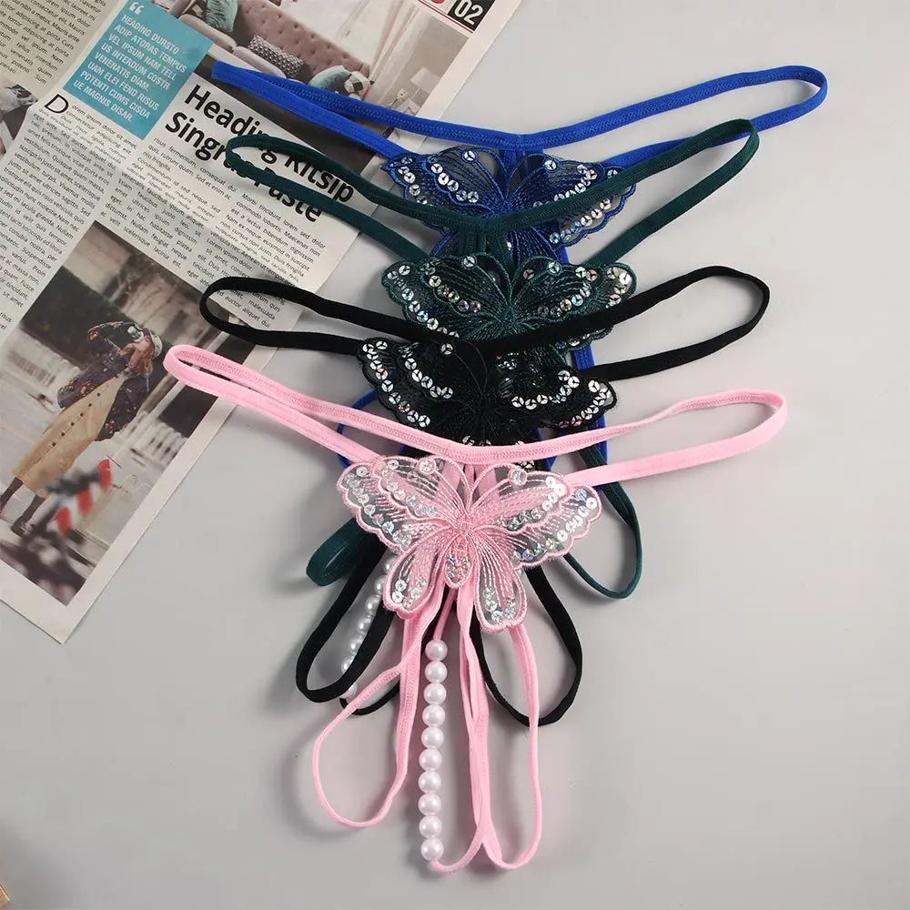 Вышивка Бабочка с блестками трусики с жемчужинами сексуальное женск...