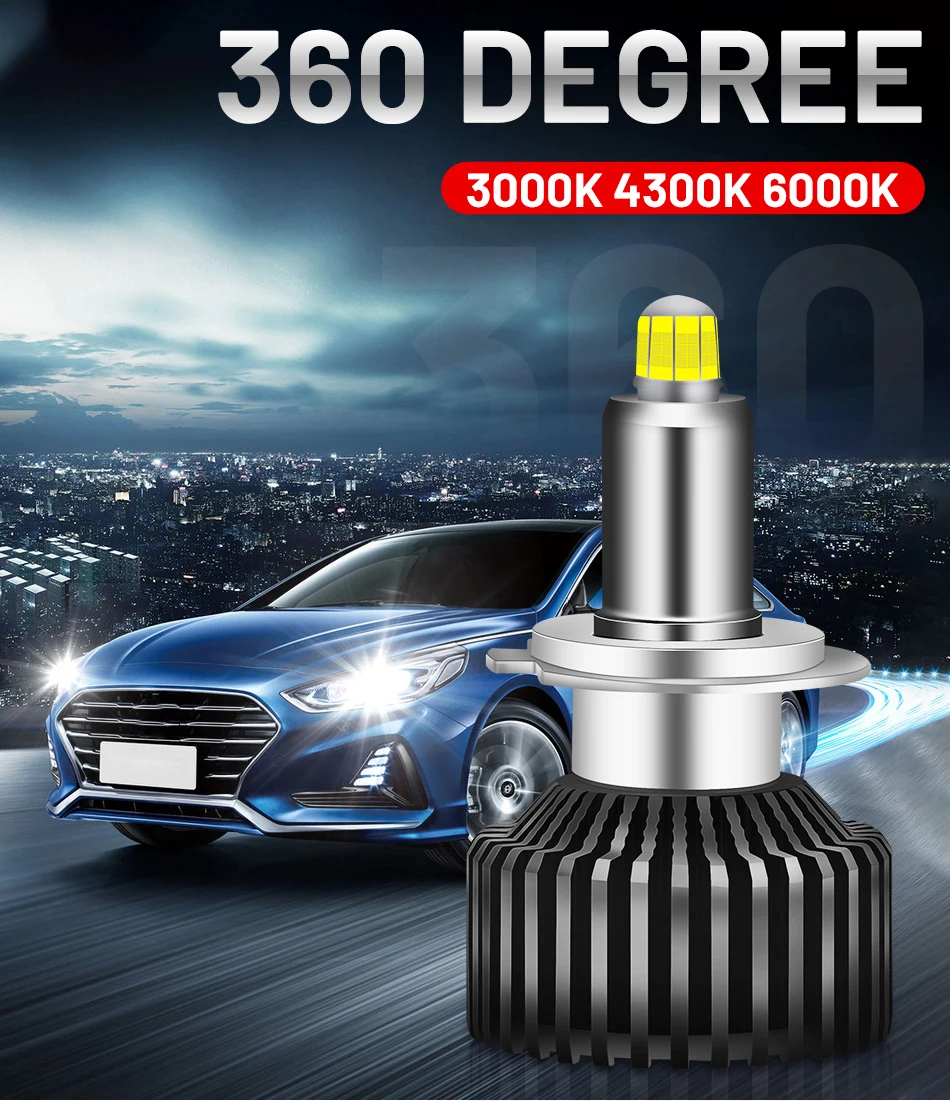 Светодиодсветодиодный лампы для передних фар H7 H11 D2S 3000K 4300K 6000K 9012 лм H1 D2R D4S D4R 9005 HIR2 H8 H9 9006 360 HB3 HB4 CSP светодиодный автомобильные лампы