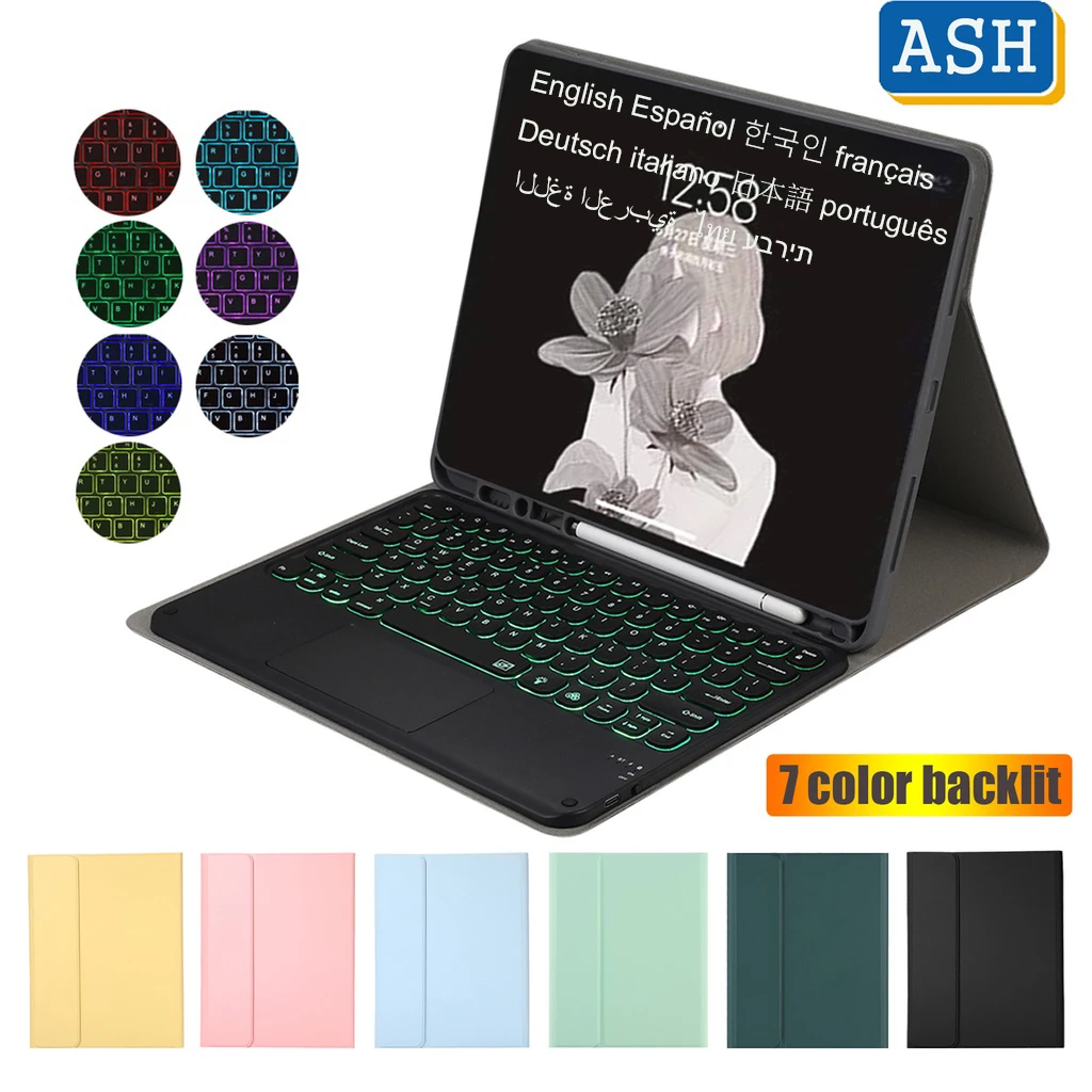 Чехол для клавиатуры с тачпадом и подсветкой для Samsung Galaxy Tab S7 FE S7 Plus, чехол-книжка из искусственной кожи с подставкой и держателем для карандашей, 7 цветов