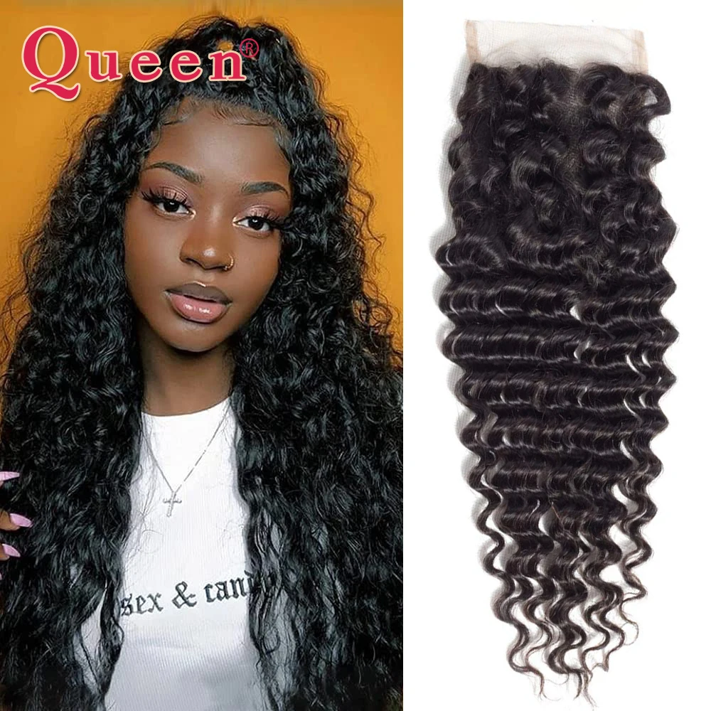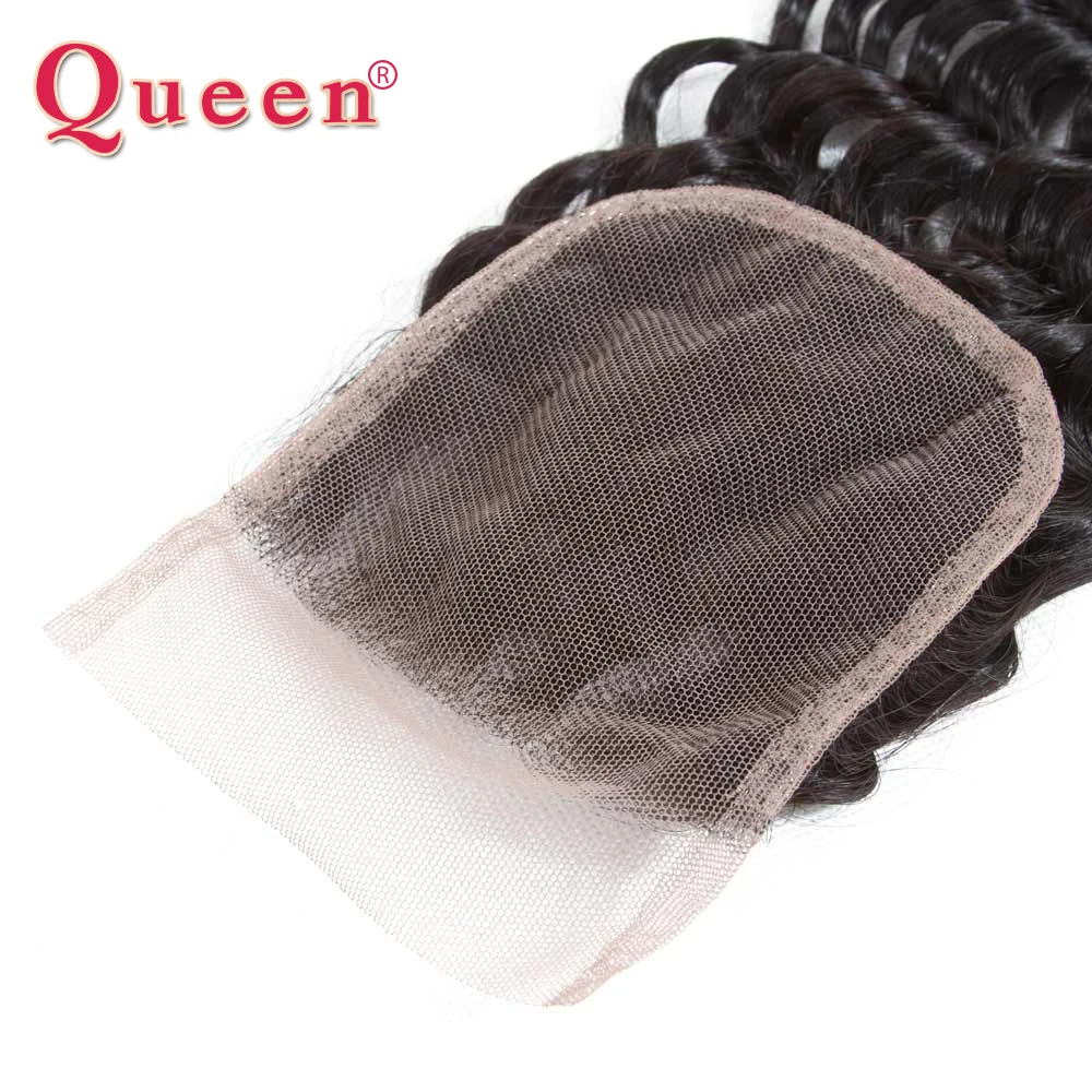 Человеческие волосы на сетке с глубокой волной 4x4, прозрачные бразильские волосы 100% без повреждений, швейцарские кружевные натуральные предварительно выщипанные Детские Волосы Queen