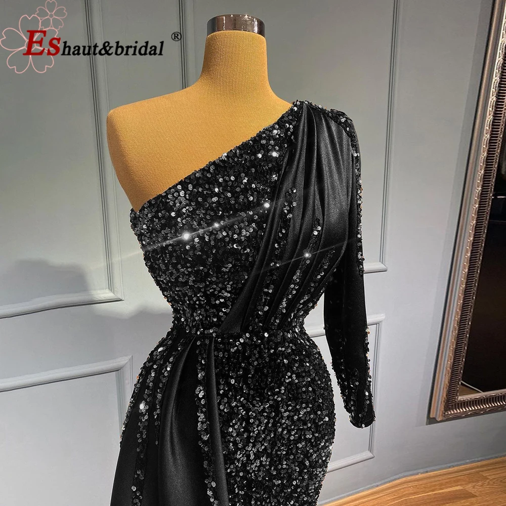 Женское вечернее бархатное платье-русалка, элегантное вечернее платье с длинным рукавом и одним открытым плечом, бальное платье с блестками для выпусквечерние вечера, 2021
