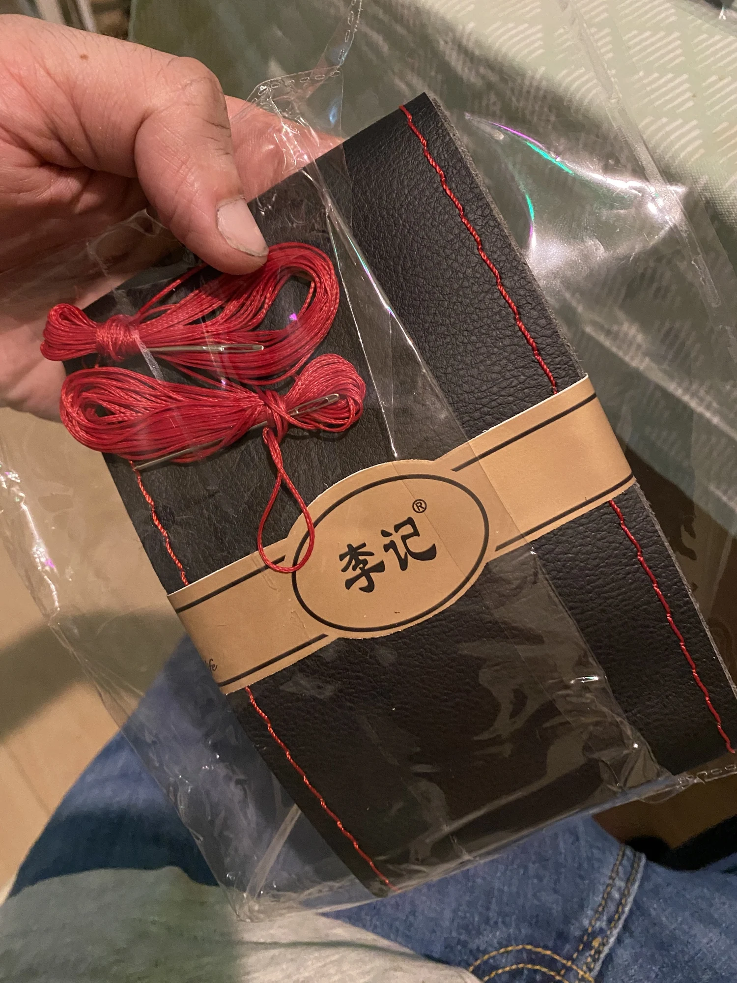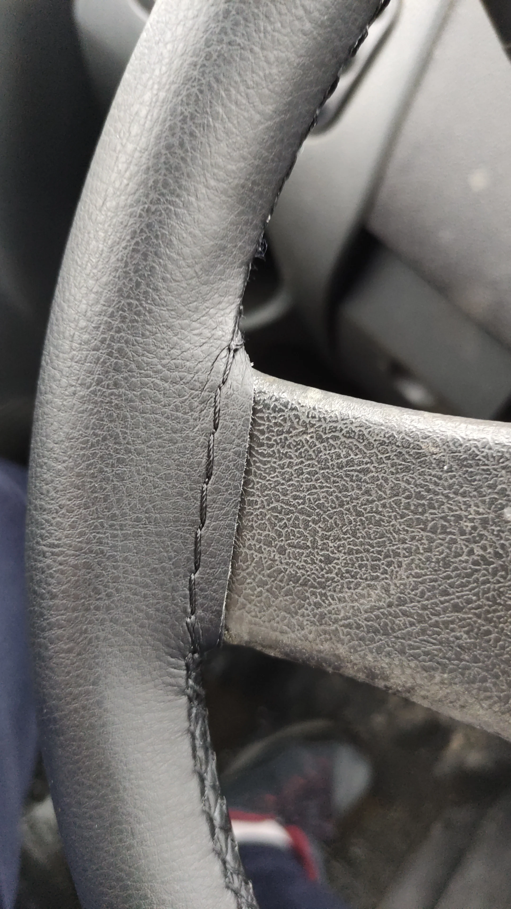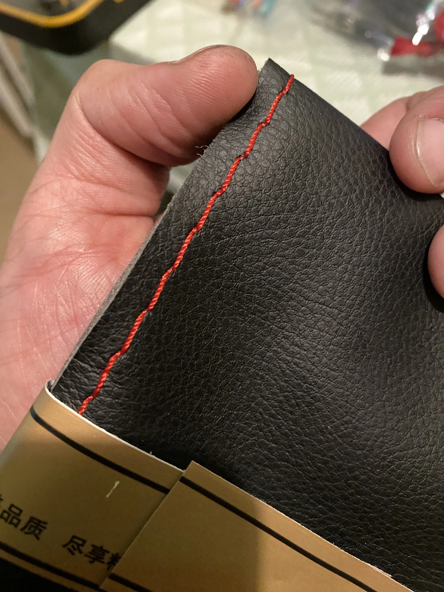 Хороший товар. Не пахнет. Легко зашивается. Если кажется что не налазит, то стоит замочить в теплой воде минут на 20, протереть полотенцем и тогда натягивать. Дал высохнуть на руле и потом уже зашивал. Единственный минус - это нитка не в цвет