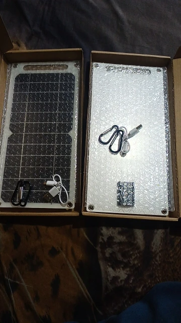 Доставка до місяця 3 тижні, запаковано добре картонна коробка і пупирка. Все ціле . Комплект цілий, порт для зарядки один, добре працює тільки на яскравому сонці , для резервного підійде. На вигляд зроблено дуже якісно!!!Прийшло збірною посилкою.