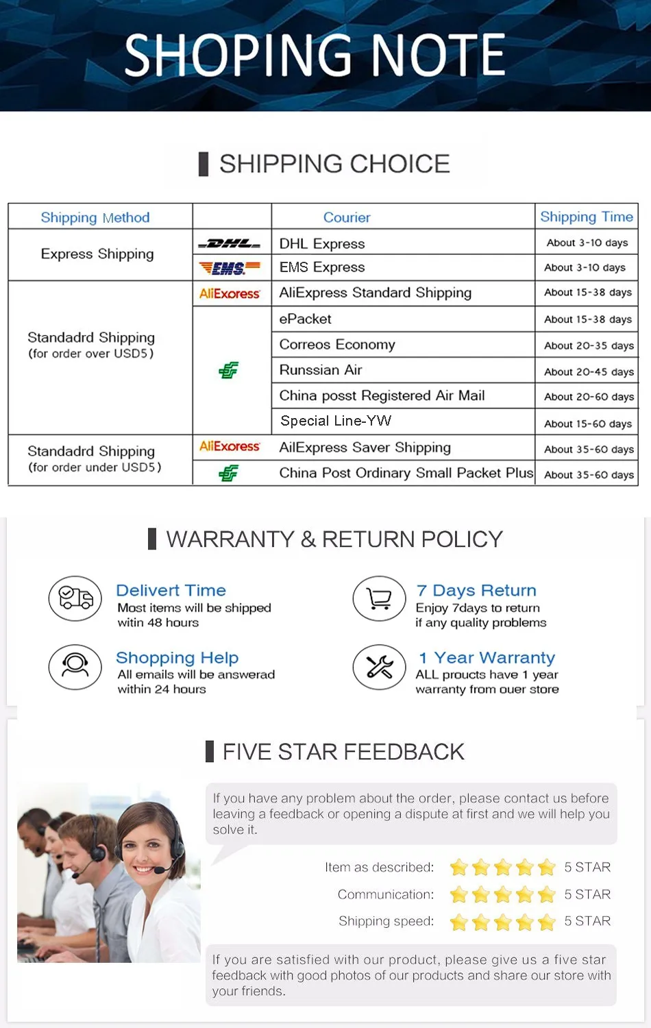 Пожалуйста, проверьте, может ли ваш адрес приема получить незарегистрированную почту, если вы не уверены, пожалуйста, выберите зарегистрированную почту, например «Почта Китая заказной авиапочтой», «AliExpress Standard Shipping», «Специальная линия-YW», «ePacket» или служба экспресс-доставки, которая может отслеживать все пути, гораздо безопаснее и быстрее. Но вы также можете заплатить дополнительную плату за них. Если есть какие-либо вопросы. Пожалуйста, не стесняйтесь связаться с нами.