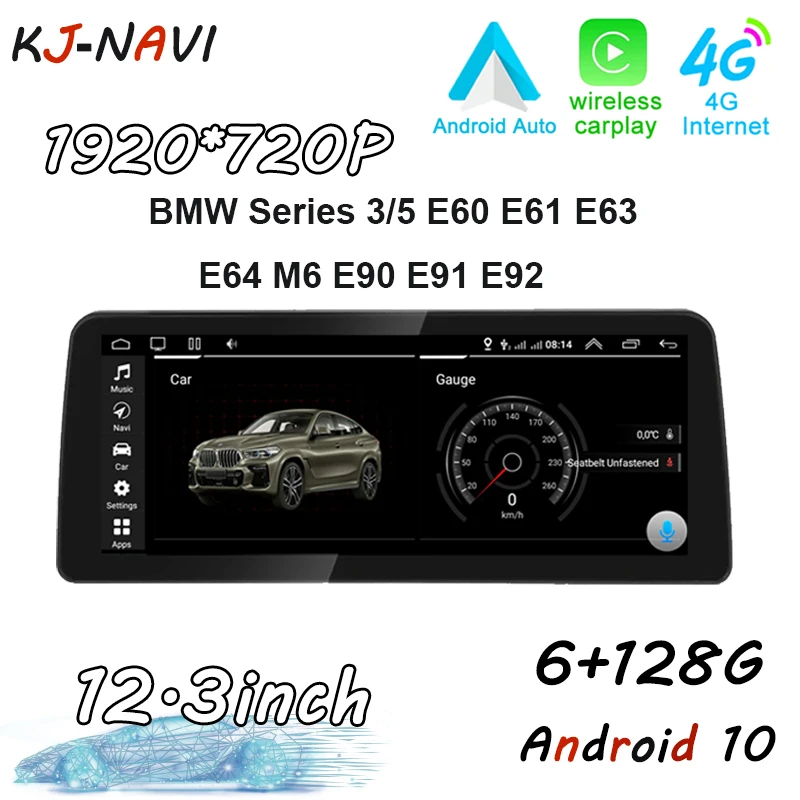 12,3 "6 + 128G 4G LIE GPS для BMW серии 35 E60 E61 E63 E64 M6 E90 E91 E92 Android 10 мультимедийная навигация видео беспроводной Carpaly