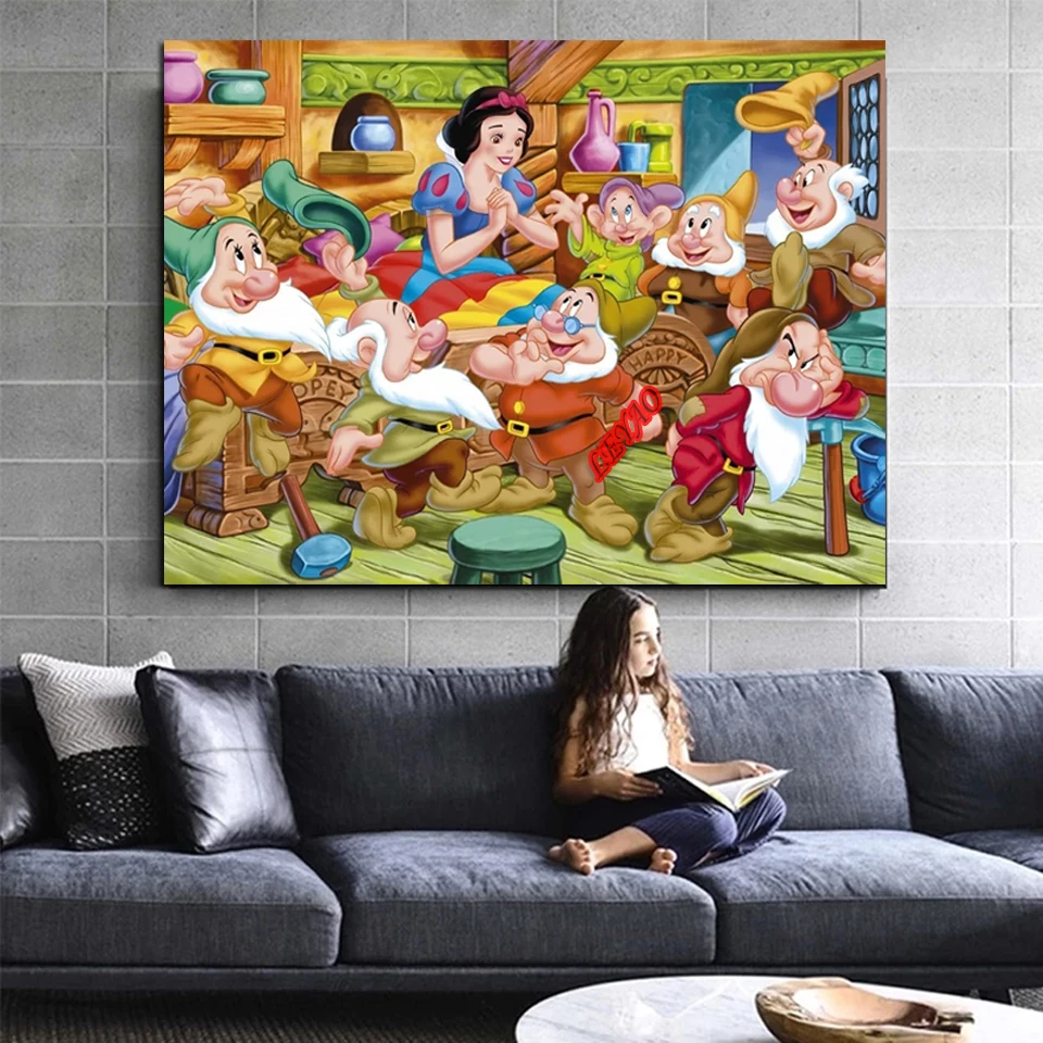 Алмазная картина полностью квадратная мультяшная принцесса 5D Сделай Сам Белоснежка и семь гномов вышивка крест набор мозаики для имитации вышивки домашний декор