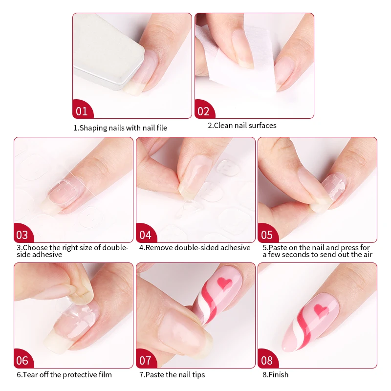Характеристика:1.100% Абсолютно Новый.2. Для профессионального наращивания ногтей.3. Идеальный выбор для вашей моды ногтей.4. Простота в использовании, точное, идеальное украшение и долговечность.5. Подходит для использования с гелем, акрилом или стекловолокном.6. Различные размеры на ваш выбор, подходят для большинства людей.7. Можно добавить украшения для ногтей на ногти и создать свой собственный стиль и узор.8. Для профессионального салона или домашнего использования. Как использовать:1. Отожмите стороны и область кутикулы для точной посадки с помощью маникюрной палочки;2. Очистите ногти от любого польского масла с помощью ацетона для удаления лака;3. Выберите правильный размер ногтей для каждого пальца;4. Нанесите клей на ногти;5. Нанесите тонкий слой клея на натуральные ногти;6. Начиная с кутикулы, нажмите и удерживайте в течение 5 секунд;7. Напиши и формируем новые ногти при необходимости. Удалите советы:Положите ногти в теплую воду в течение 2 минут, и стикер для ногтей может быть удален легче.Не удаляйте его резко, и это может нанести вред поверхности ногтей. Примечание:Ввиду того, что Замеры производились вручную, замеры сделаны вручную, поэтому возможны 0,05 см считается допустимой.Между тем, цвет может немного отличаться от цвета экрана с разным разрешением. Надеюсь, вы не против.Если размер ваших ногтей больше, чем у других, вы можете выбрать Длинные накладные ногти в нашем магазине.
