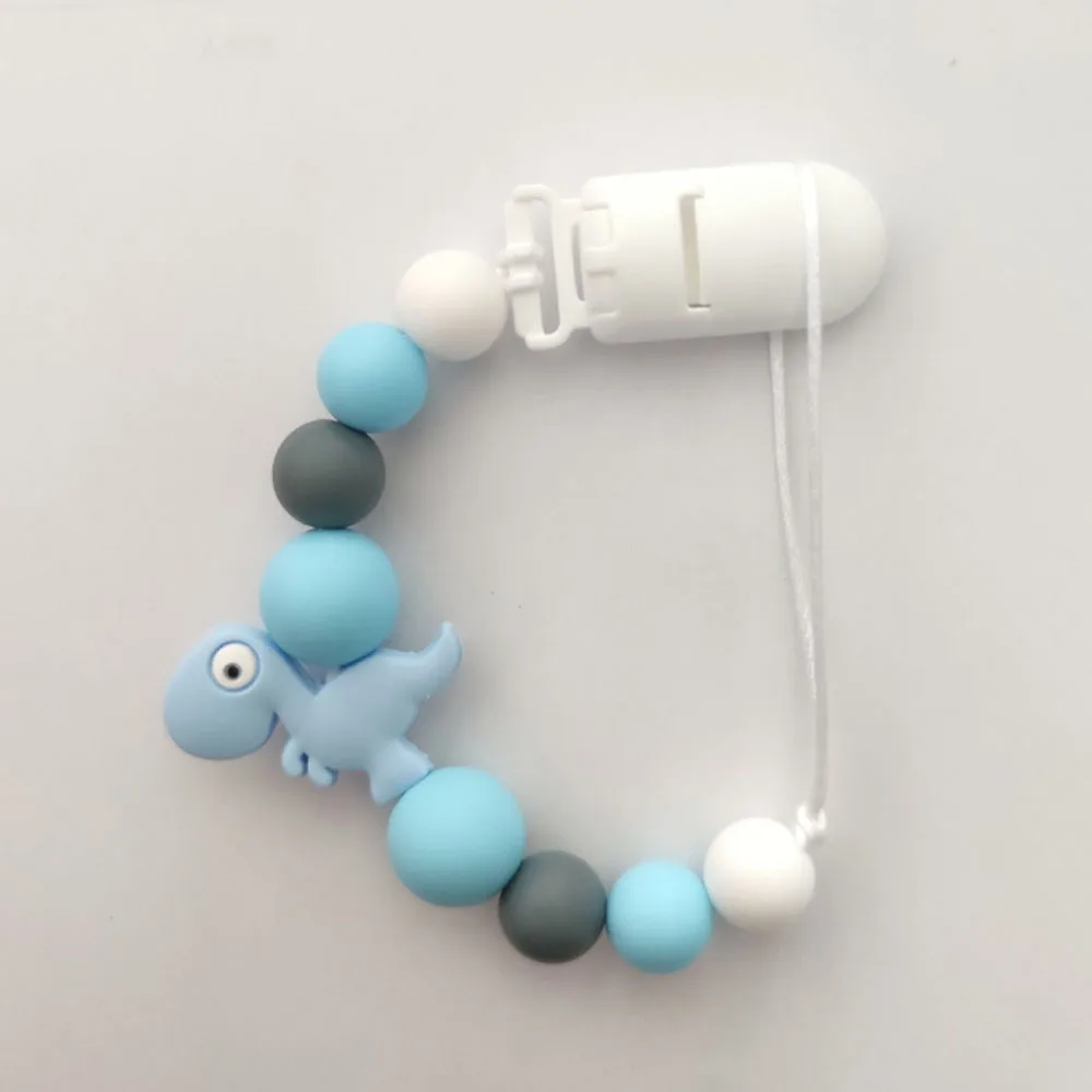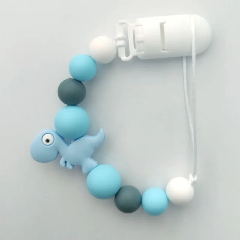 Силиконовая цепочка-зажим для соски-пустышки в виде динозавра