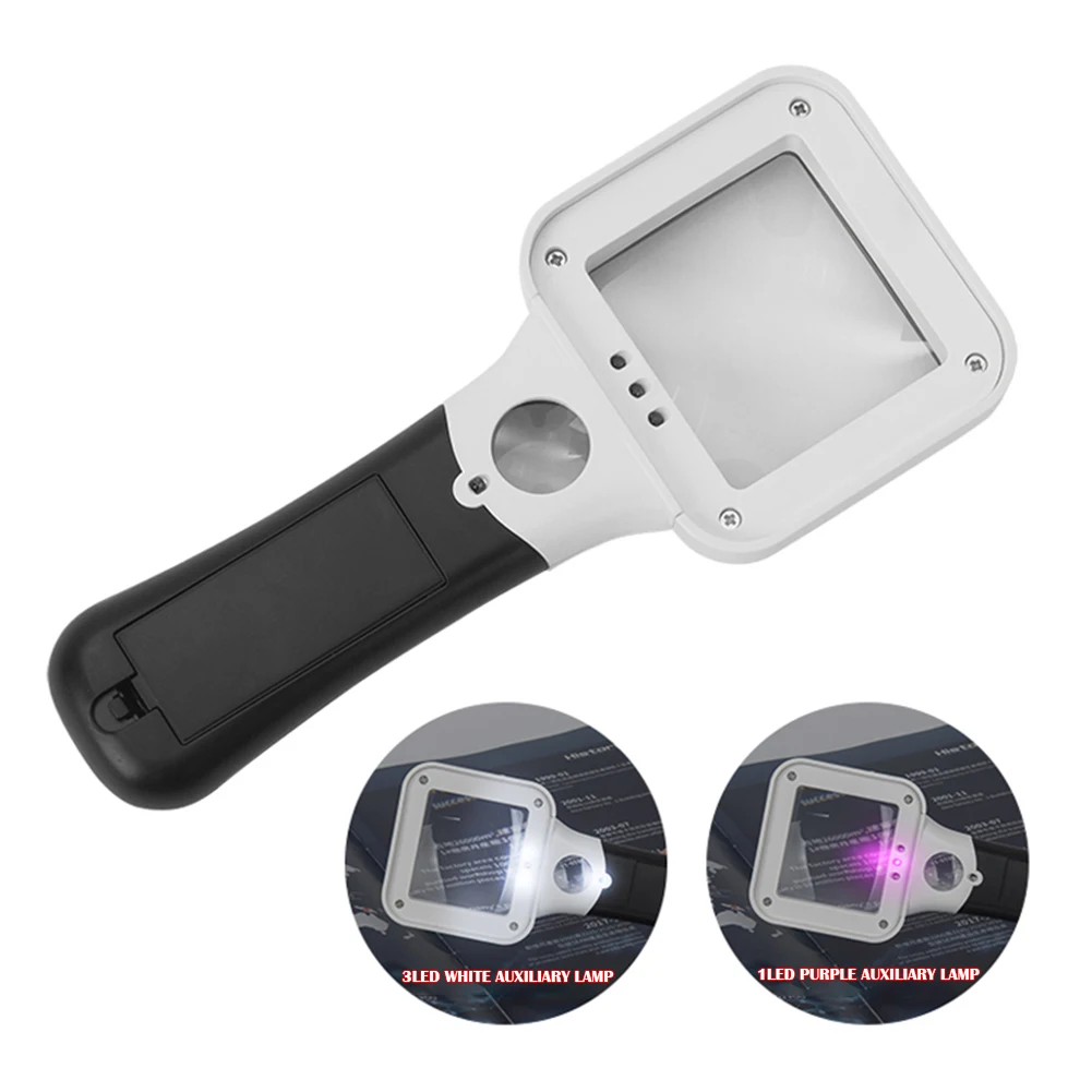 Лупа с подсветкой для чтения банкнот с 3 светодиодами и УФ-лампой