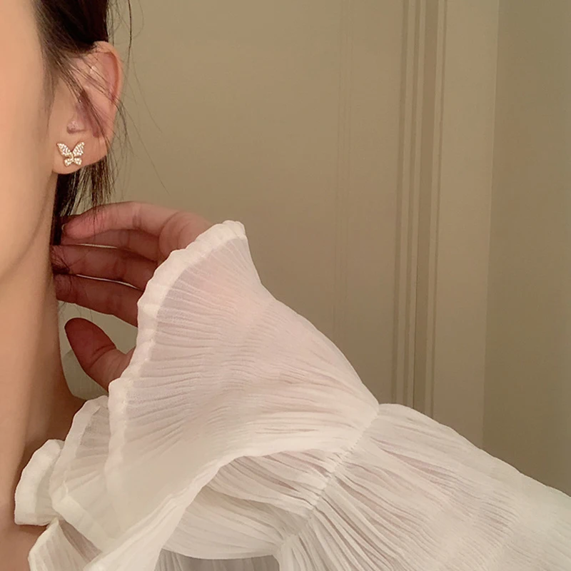 Номер моделиKorean Elegant Butterfly Stud Earrings With Rhinestones For Women Girl