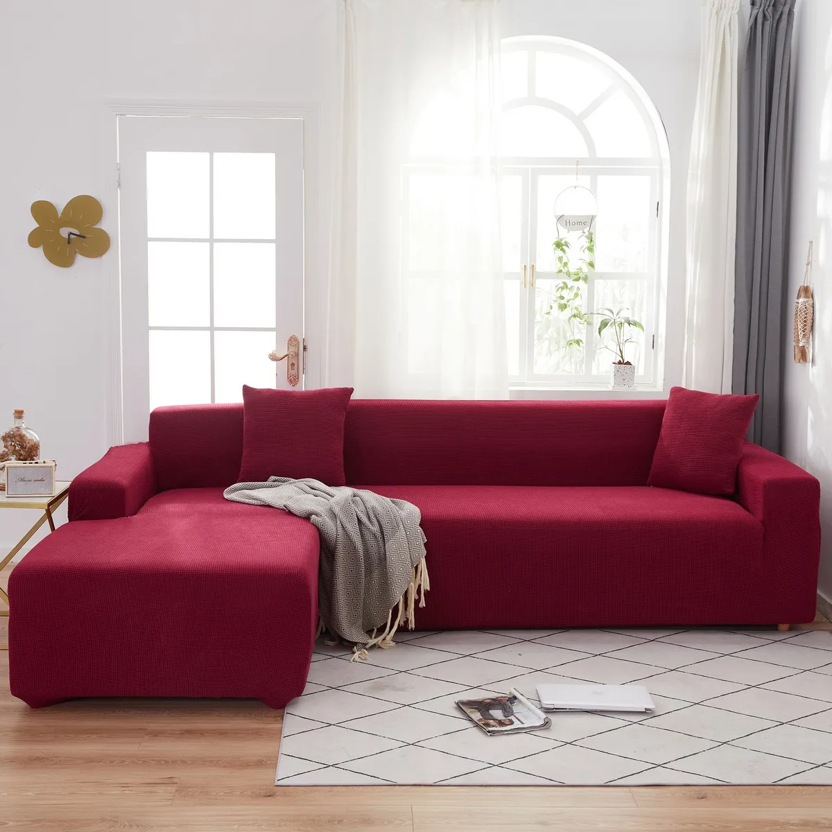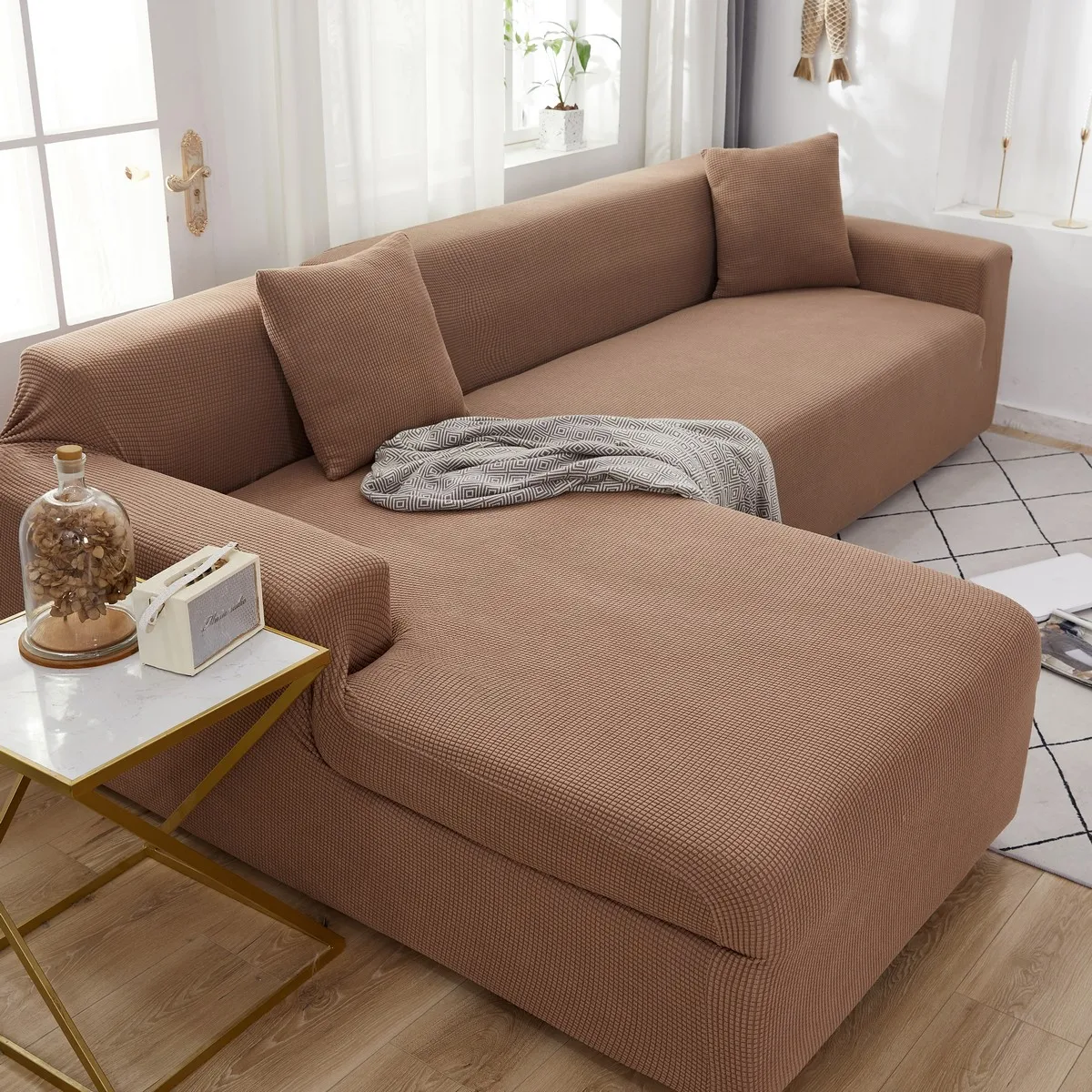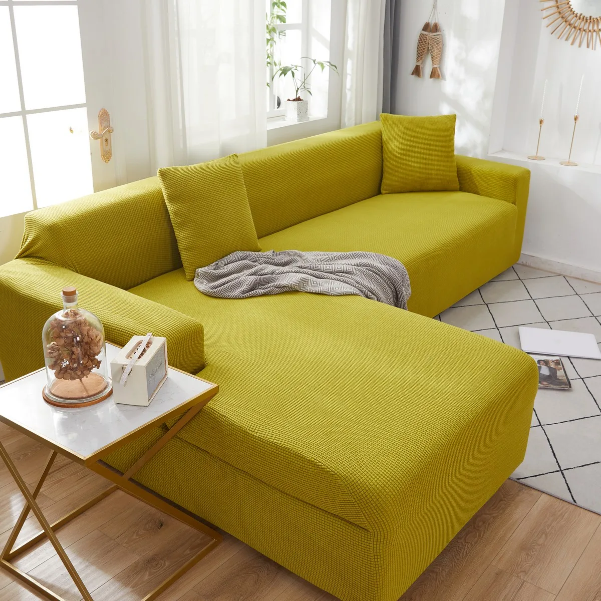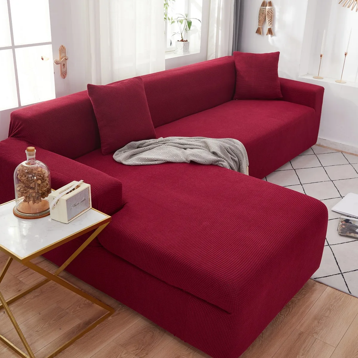 Плотный эластичный чехол для дивана в гостиную, жаккардовый флисовый чехол для кресла L-образной формы, угловая кушетка, плотный защитный чехол