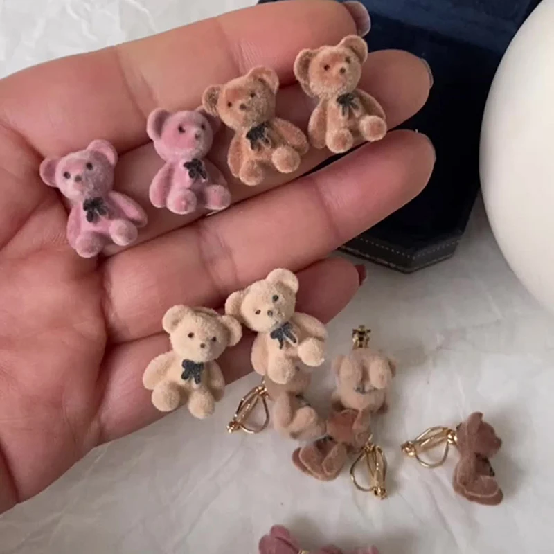 Новые корейские милые смешные плюшевые маленькие серьги-гвоздики с милым бантом медведем изящная серьга модные украшения 2021