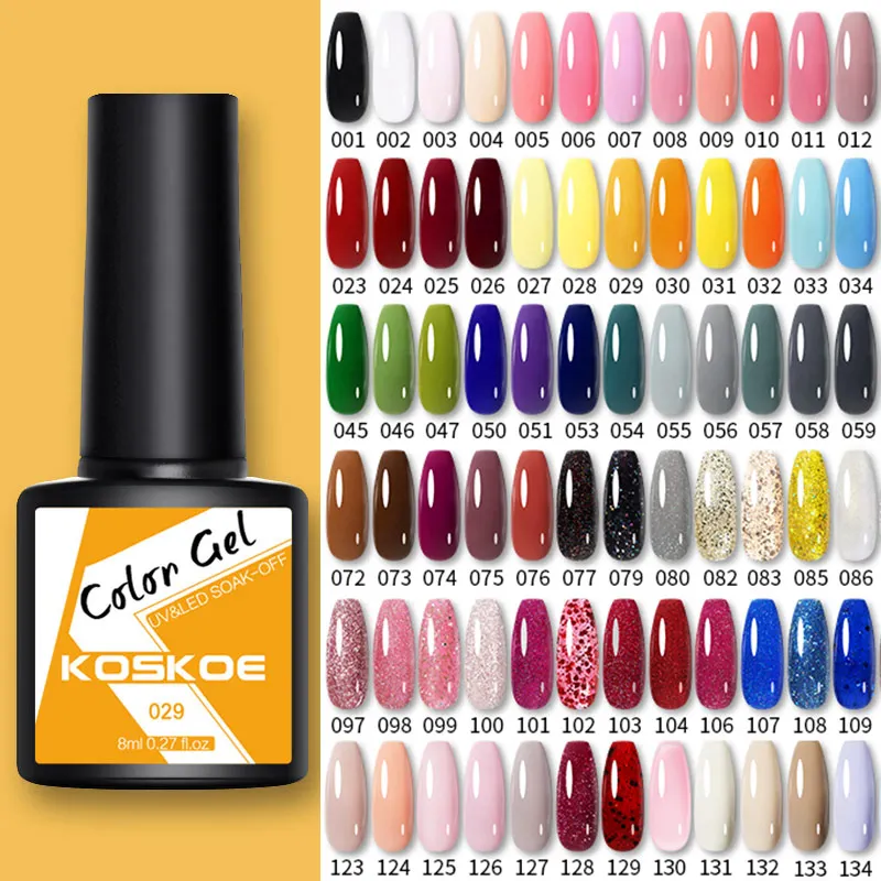 Гель-лак KOSKOE для ногтей, 8 мл, отмачиваемый Светодиодный УФ-гель для маникюра, Полупостоянный лак для ногтей, необходимое базовое и верхнее покрытие