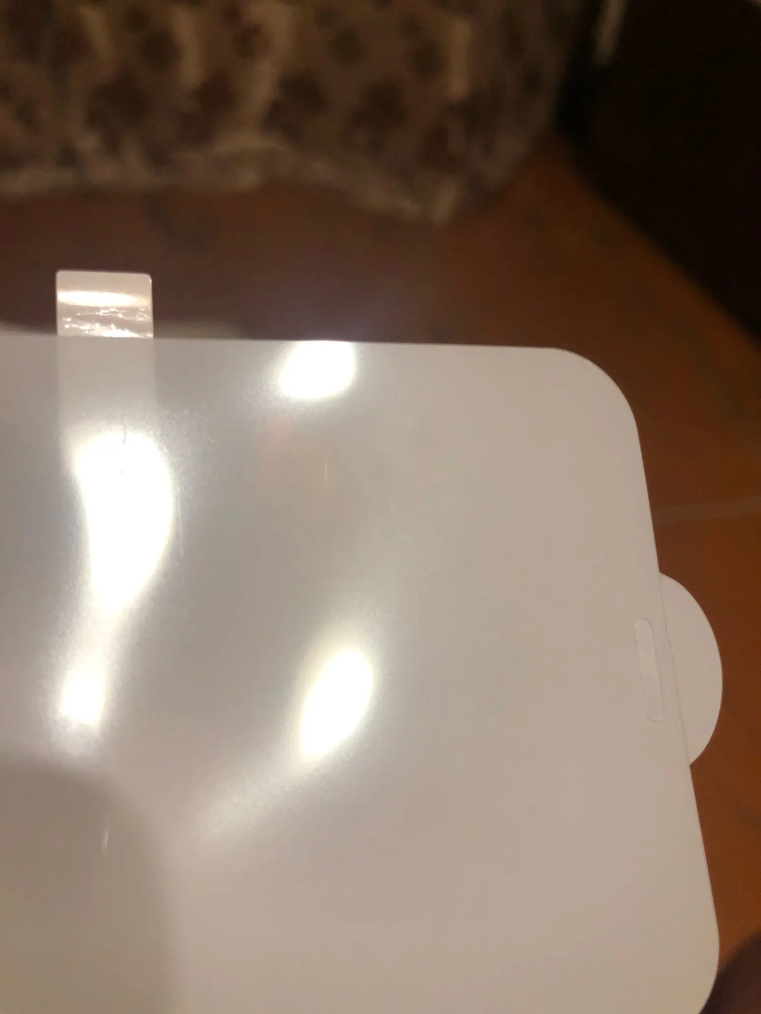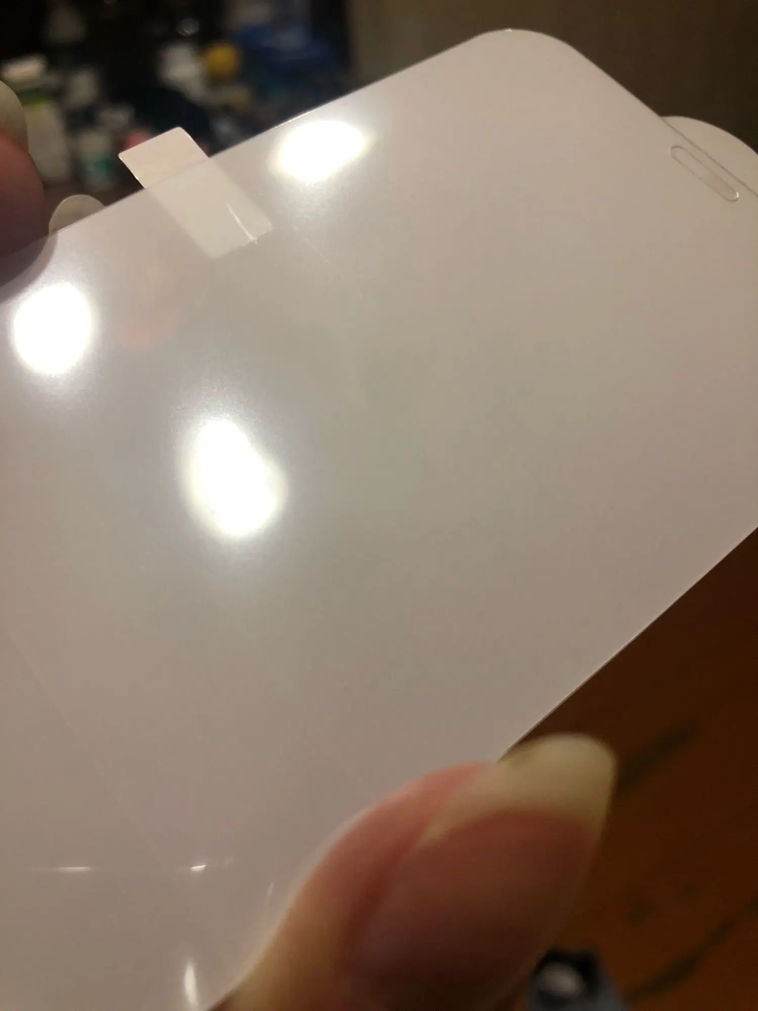 Заказывала у нескольких магазинов, эта пришла в самом худшем состоянии, царапины сильные в правом нижнем углу, царапины в левом верхнем углу и очень сильная царапина рядом. Клеить не вижу смысла, можно просто выкинуть. К сожалению на фото сильно бликует и поэтому плохо видно. Отправили быстро, но магазин не следит за качеством отправляемого товара. Не рекомендую ни кому.