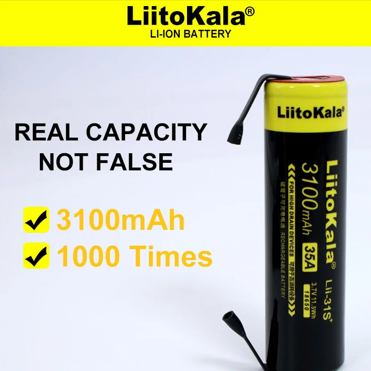 1-20 шт., новинка, аккумулятор LiitoKala Lii-31S 18650, 3,7 в4,2 в, литий-ионный аккумулятор мА, 35 А, аккумулятор для высокой искусственной кожи + никель для самостоятельной сборки