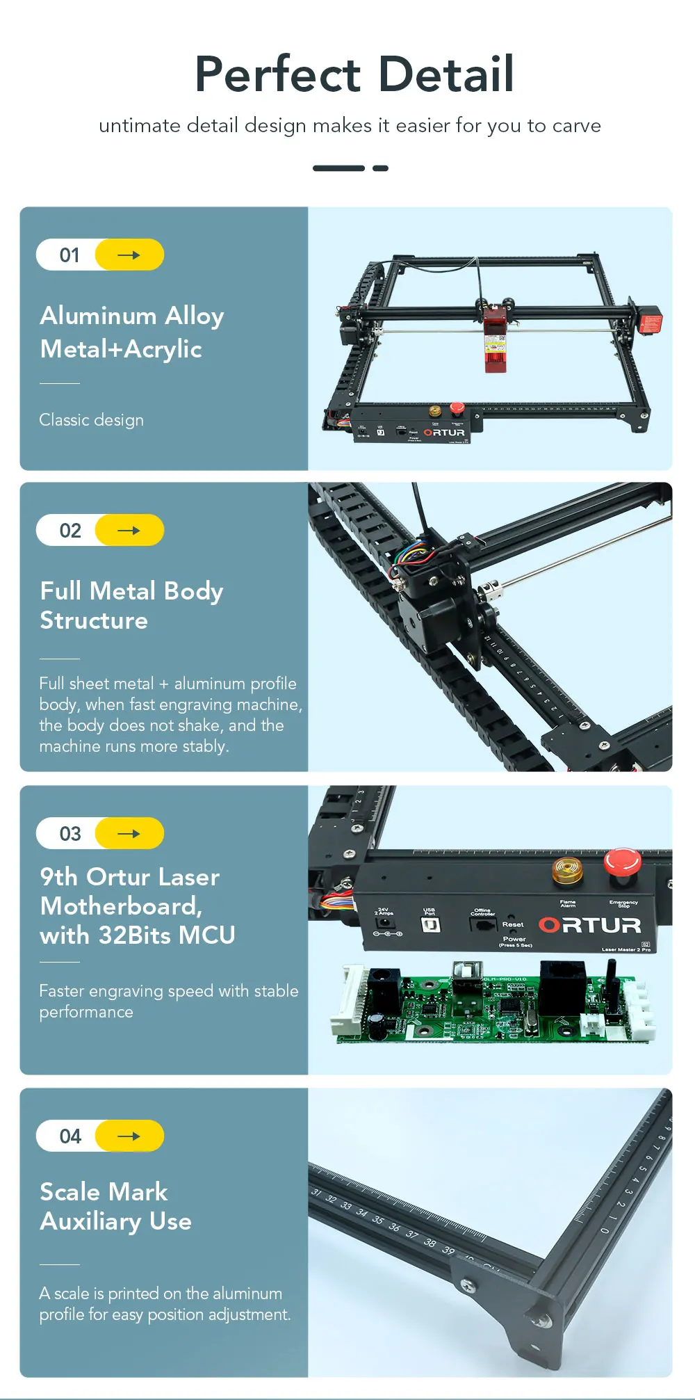 Бренд: OrturНомер модели: Laser Master 2 pro S2Тип: лазерная гравировальная машинаМатериал: алюминий + сталь с порошковым покрытиемМощность лазера: LU2-4 лазерный модуль с сжатым фокусным расстоянием 20 Вт (электрическая мощность: 20 Вт, Сила света: 5000-5500 МВт)Дальность достижения лазера: 445 ± 5 нмПитание: адаптер питания 24 В 2 А