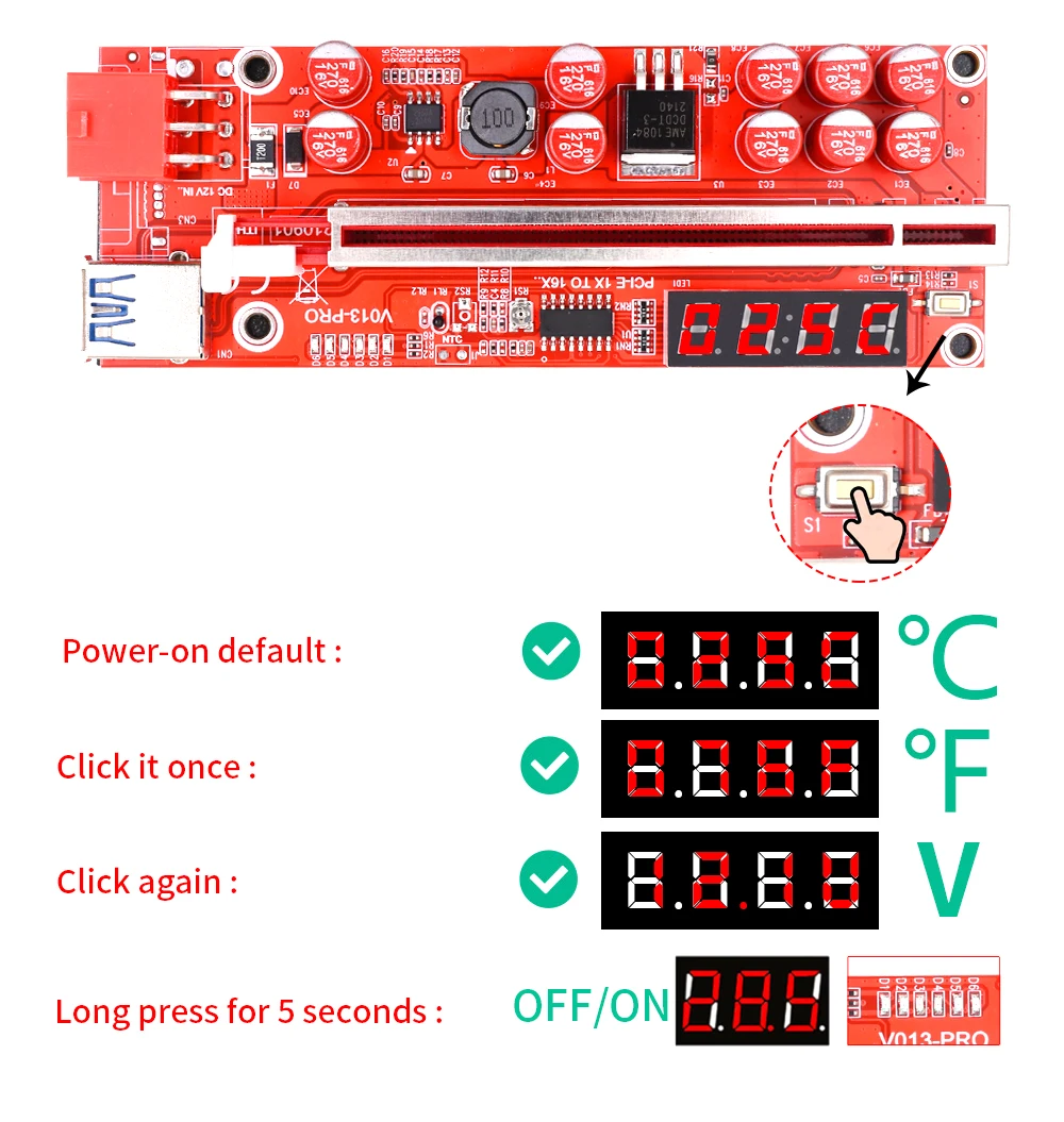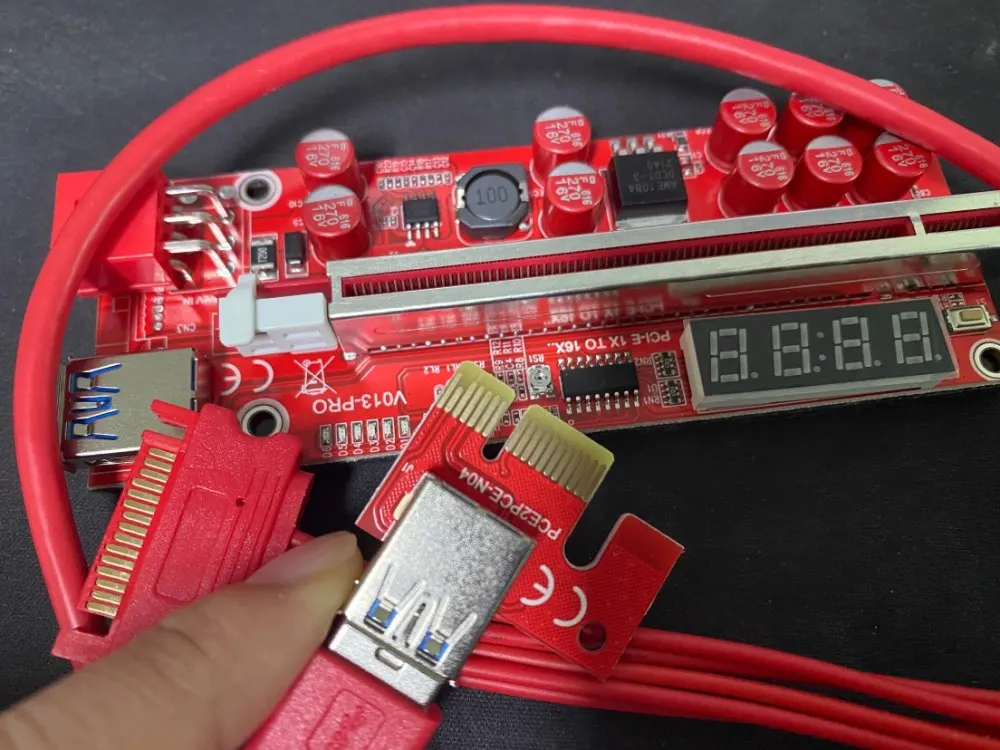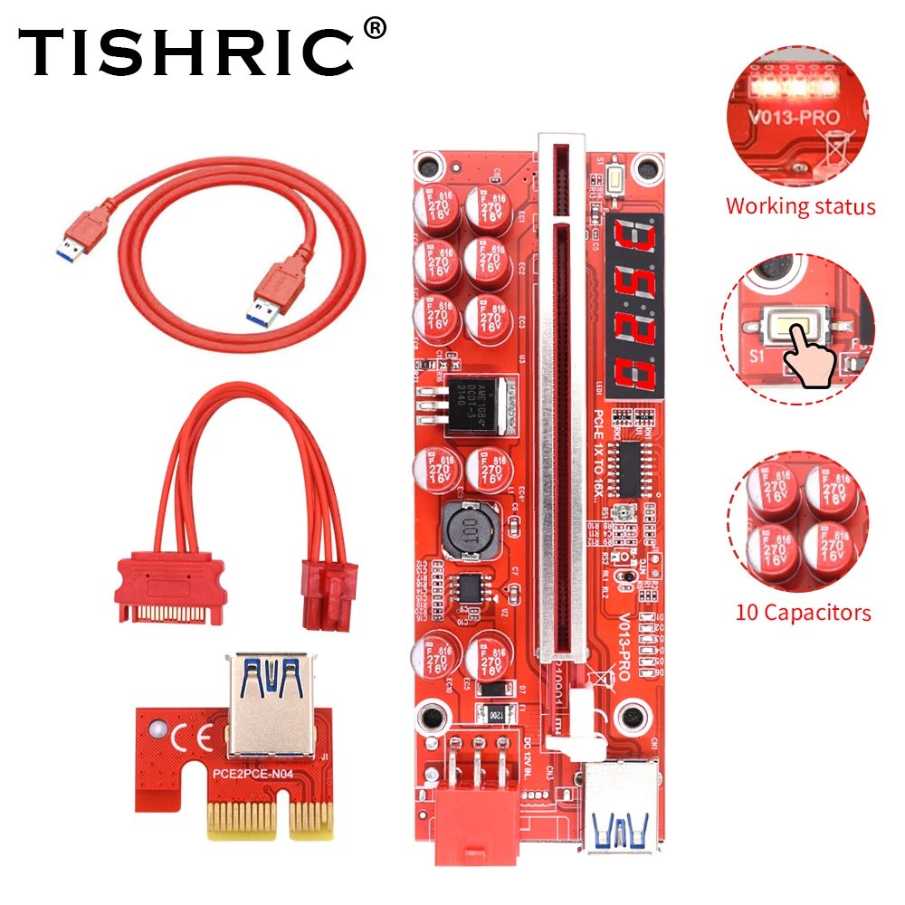 TISHRIC PCIE Riser 013 Pro GPU Riser PCI-E 16x Riser USB3.0 кабель PCI Express x16 10 конденсаторы температурный дисплей для майнинга