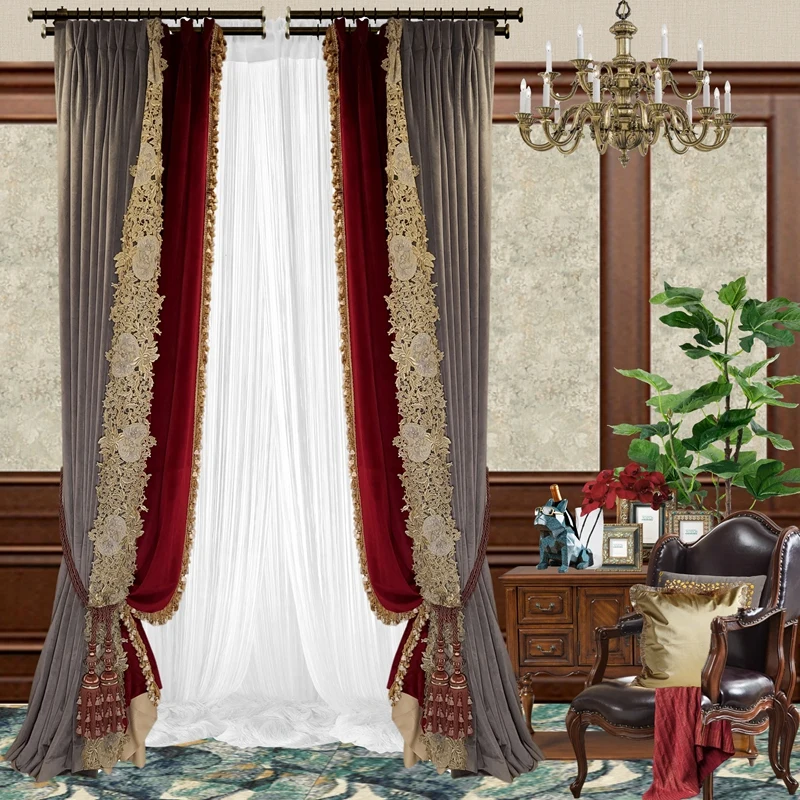 Шторы блэкаут с французским бархатным кружевом для спальни, гостиной